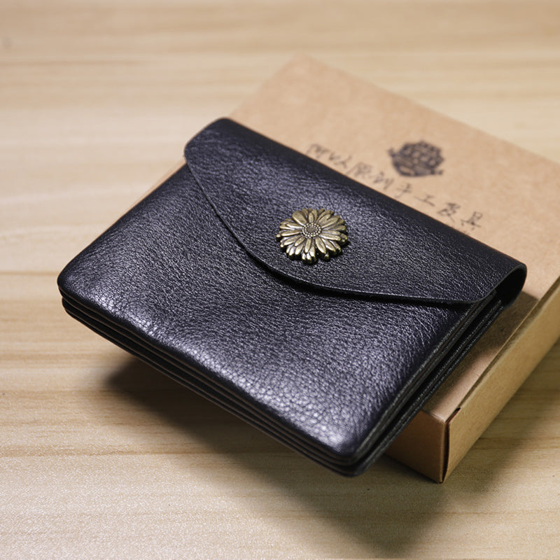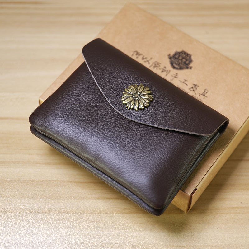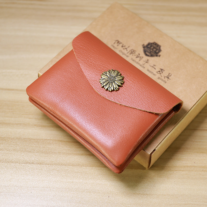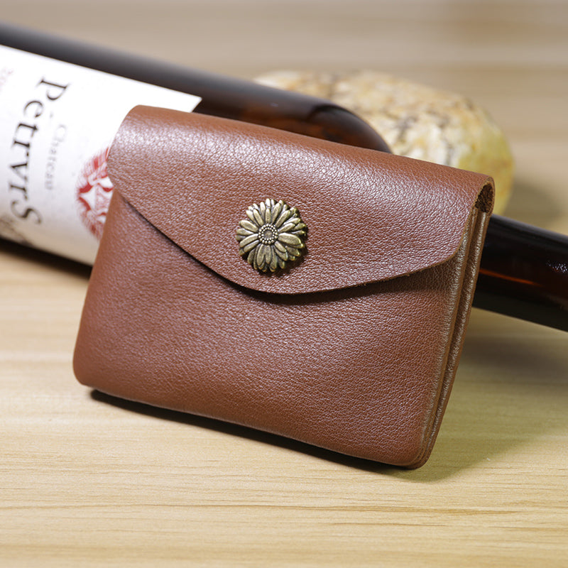 Style: Slim Women Sunflower Leather Card Wallet Minimalist Envelope Card Holder Wallet Coin Wallet For Women