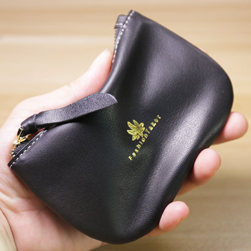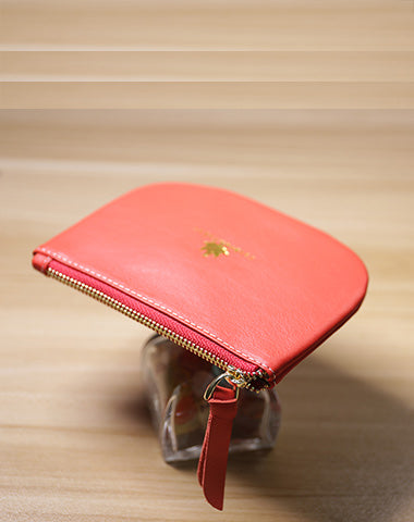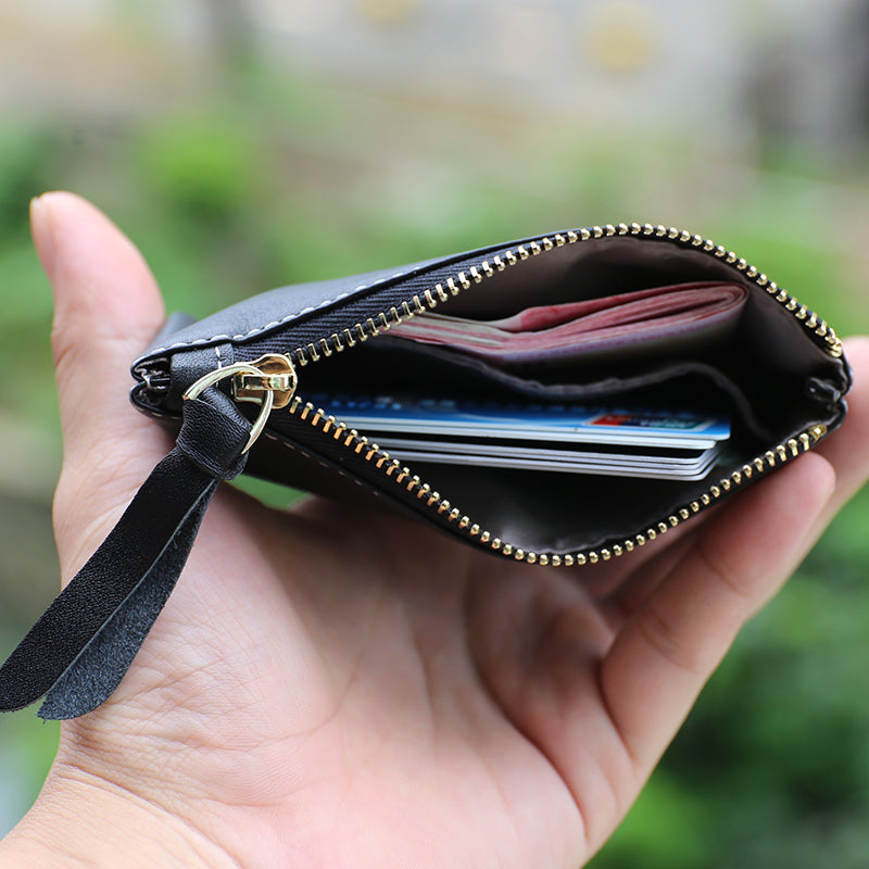 Design: Slim Women Leather Zip Card Wallet Saddle Minimalist Coin Wallet Small Zip Change Wallet For Women