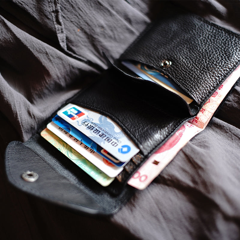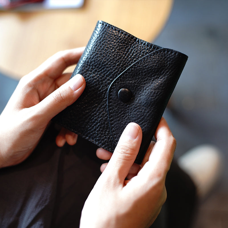 Design: Slim Womens Black Leather Billfold Wallet Small Wallet with Coin Pocket Envelope Wallet for Ladies