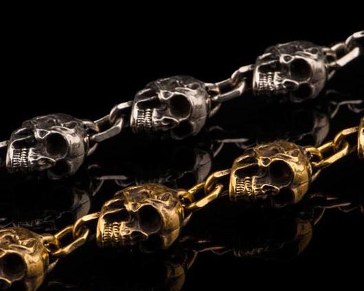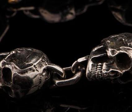 Design: Silver Brass Stainless Steel Biker Trucker Skull Heavy Gothic Skulls Mens Bracelet Biker Jewelry