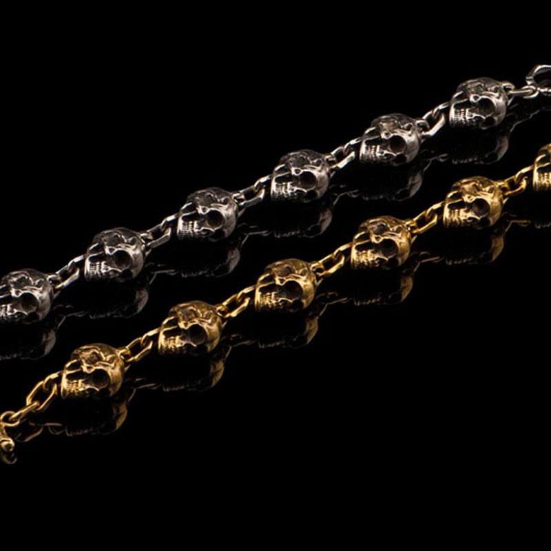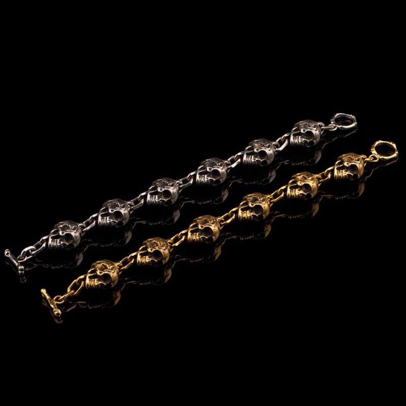 Style: Silver Brass Stainless Steel Biker Trucker Skull Heavy Gothic Skulls Mens Bracelet Biker Jewelry
