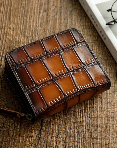 Style: Small Green Leather Zip Wallet Crocodile Pattern Womens Zip Around Wallets Zipper Clutch Wallet for Women
