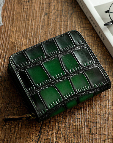 Design: Small Green Leather Zip Wallet Crocodile Pattern Womens Zip Around Wallets Zipper Clutch Wallet for Women