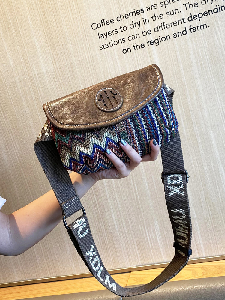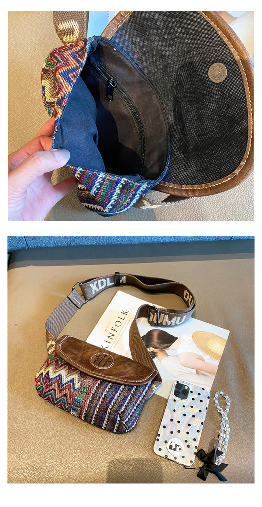 Small Boho Waist Bag Shoulder Bag Women Canvas Boho style Bags Embroidery Canvas Boho Crossbody Bag