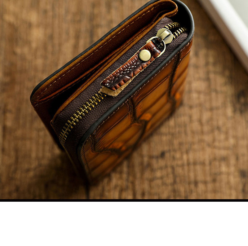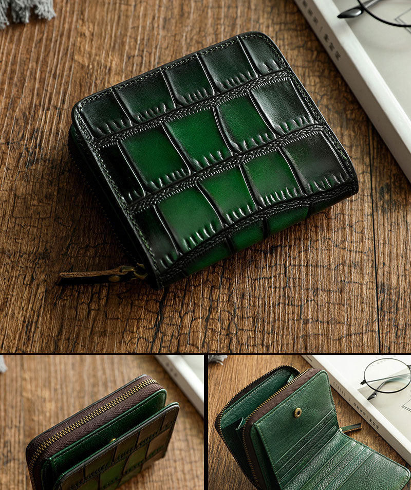 Design: Small Brown Leather Zip Wallet Crocodile Pattern Womens Zip Around Wallets Zipper Clutch Wallet for Women