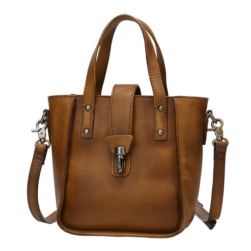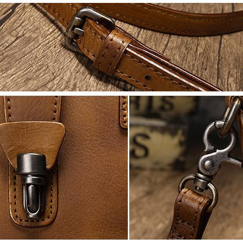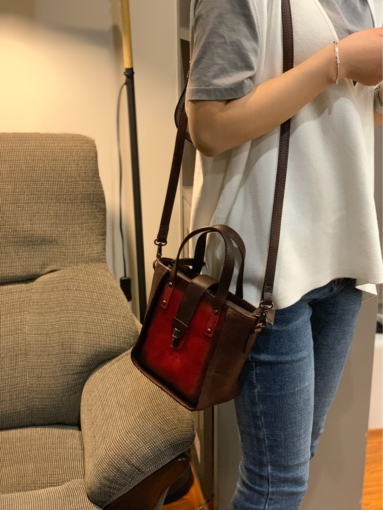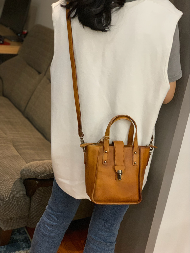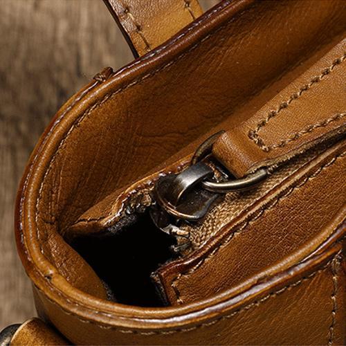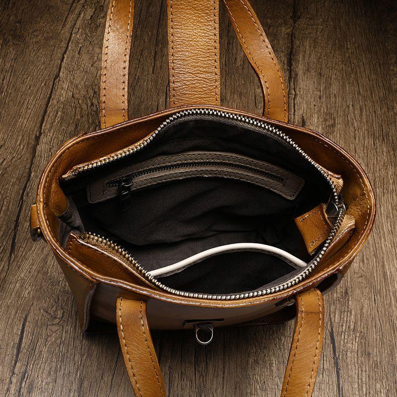 Design: Small Bucket Bag Brown Leather Bucket Bag With Zipper Purse