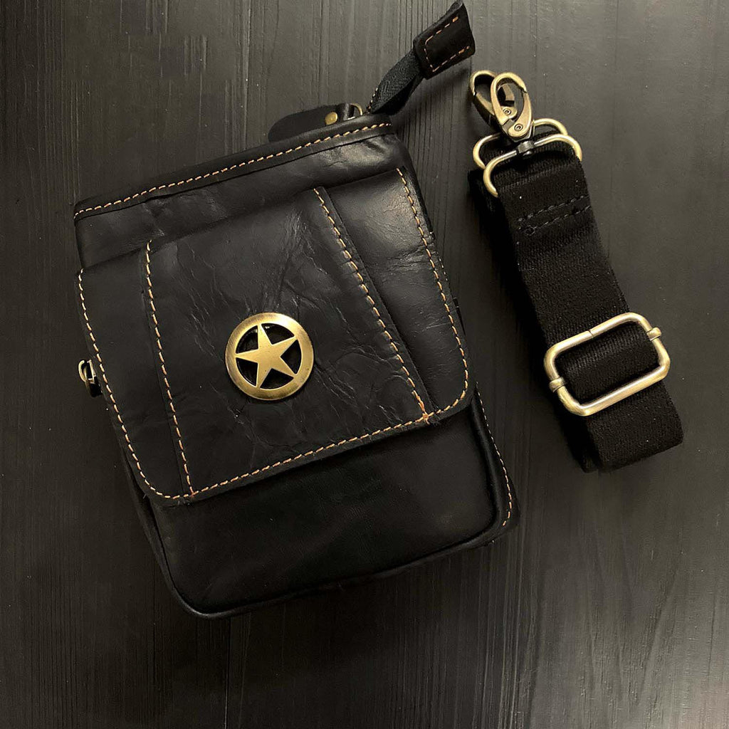 Style: Small Casual Leather Men's Cellphone Belt Bag Motorcycle Bag Hiphop Trendy Shoulder Bag For Men
