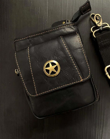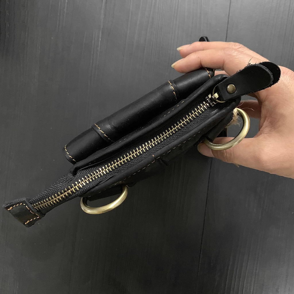 Cool Black Leather Men's Biker Belt Pouch Waist Belt Bag Black Small Biker Side Bag For Men
