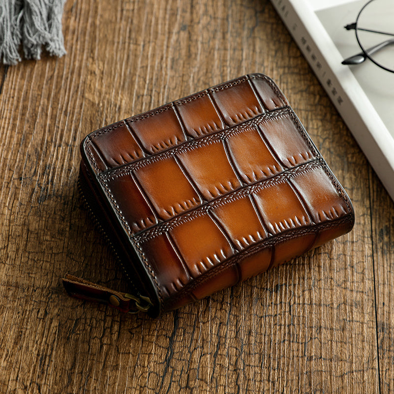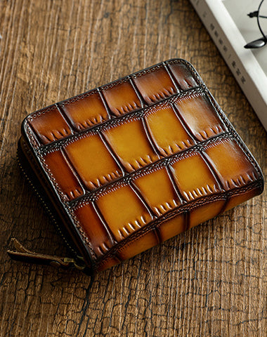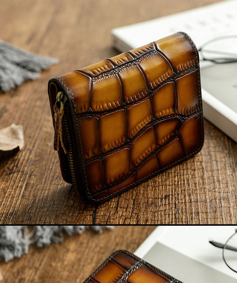 Design: Small Coffee Leather Zip Wallet Crocodile Pattern Womens Zip Around Wallets Zipper Clutch Wallet for Women