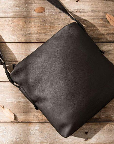 Design: Small Cool Black Square Leather Mens Messenger Bags Shoulder Bags for Men