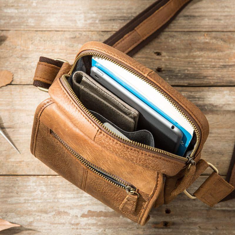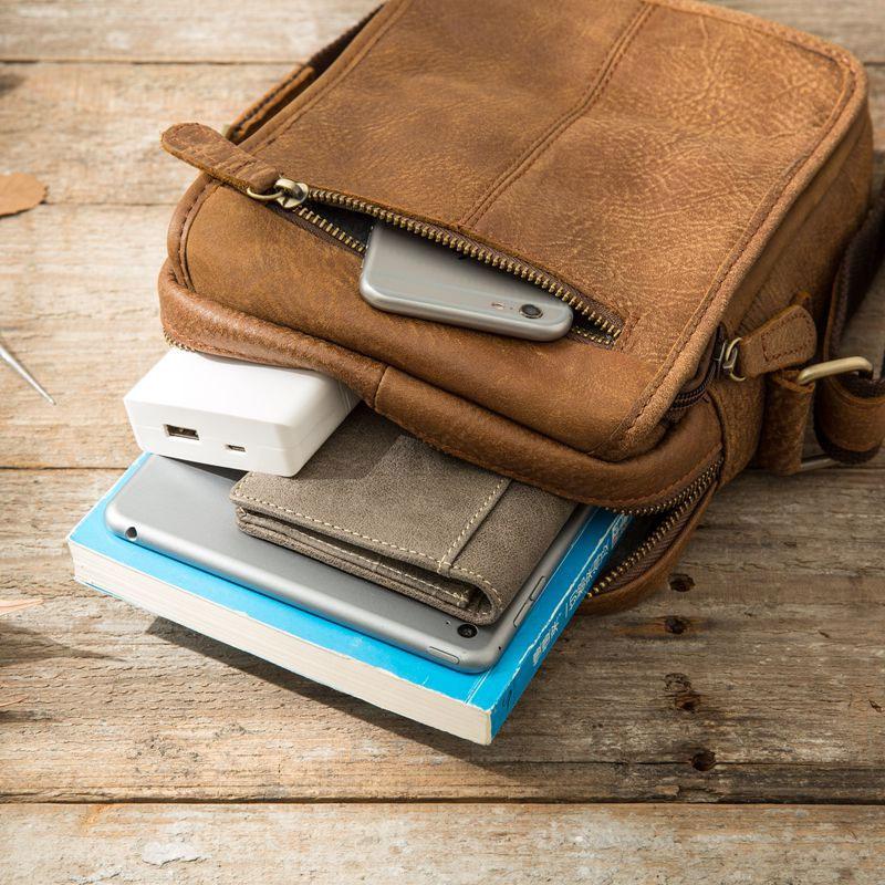 Design: Cool Leather Mens Small Messenger Bags Shoulder Bag for Men