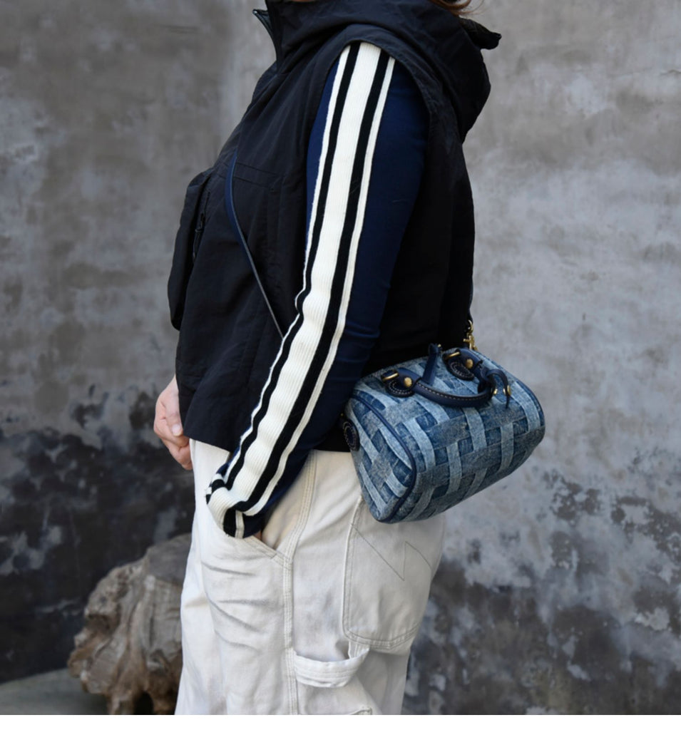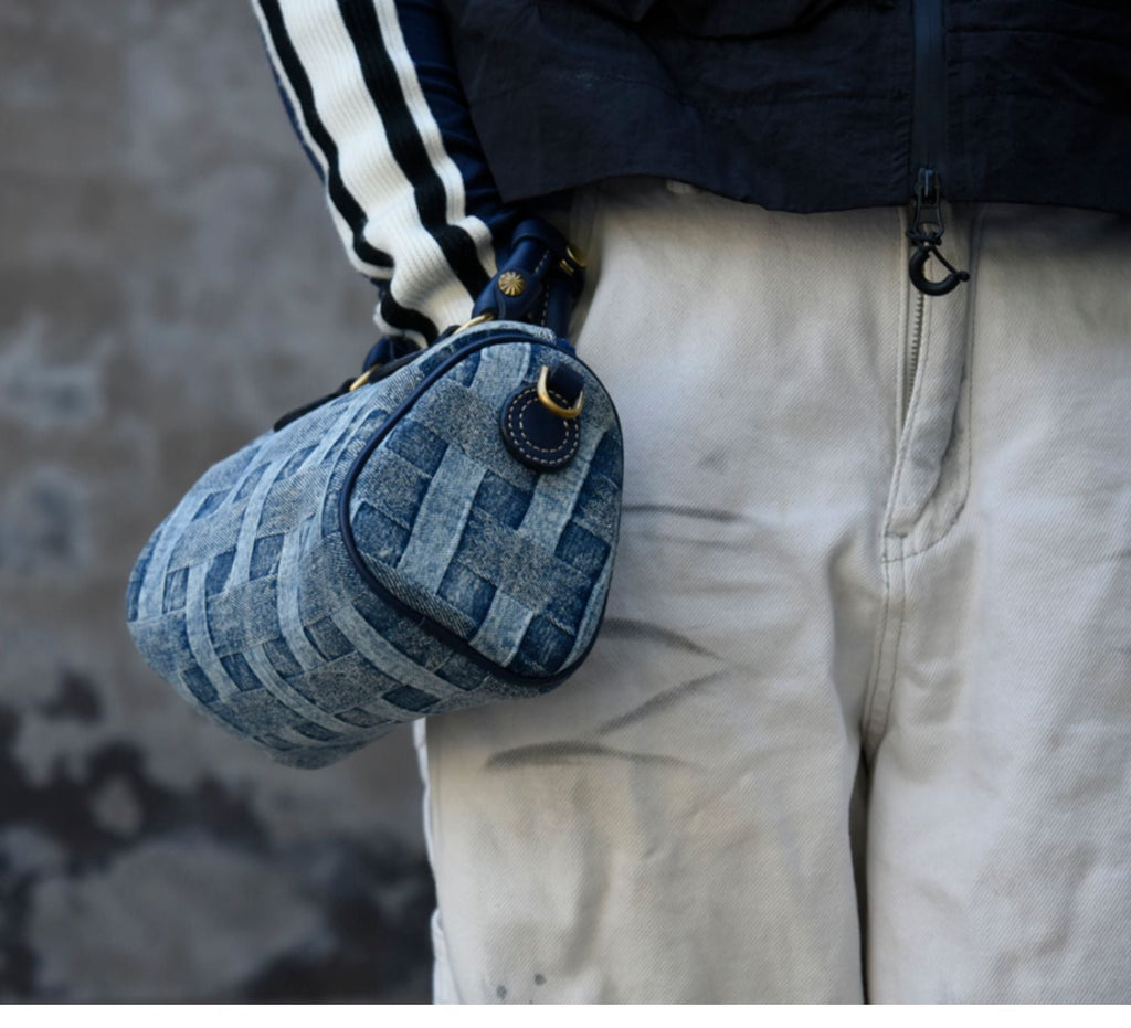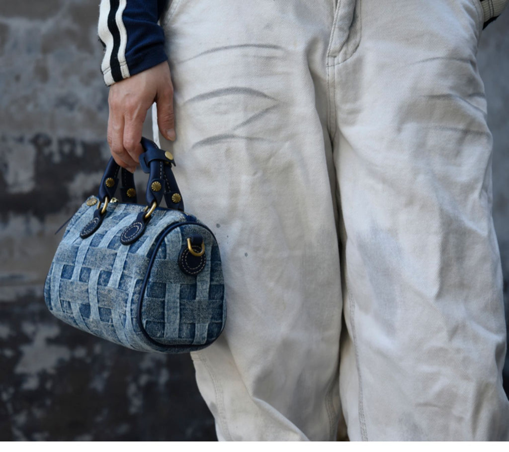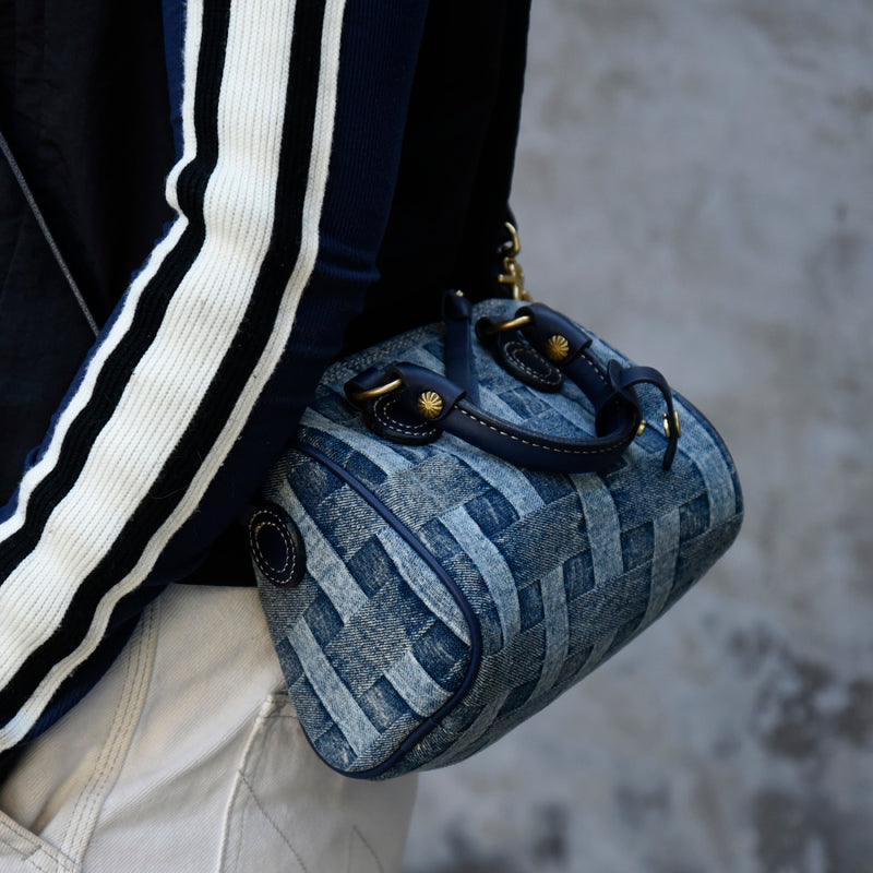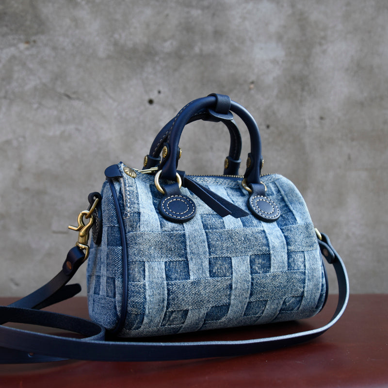 Design: Small Denim Boston Bag Denim Handbags for Women Blue Denim Crossbody Bag for WOmen
