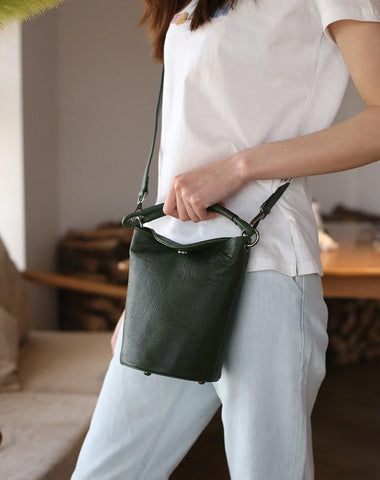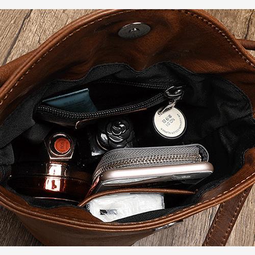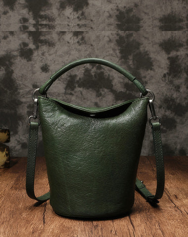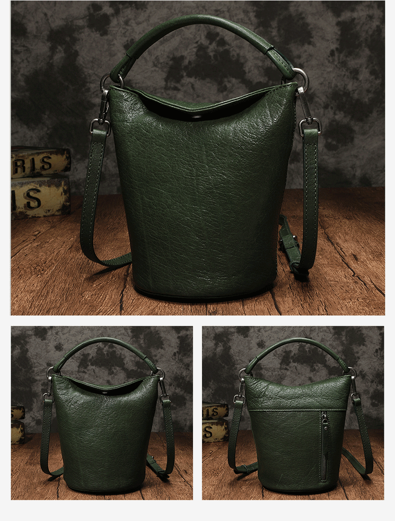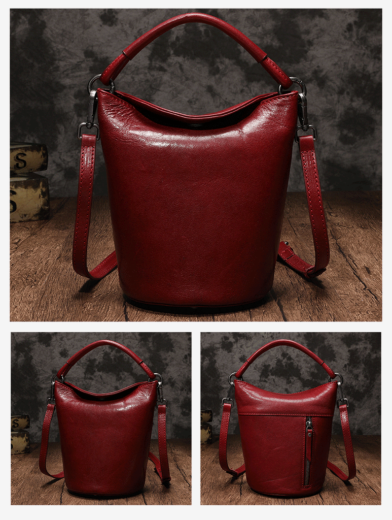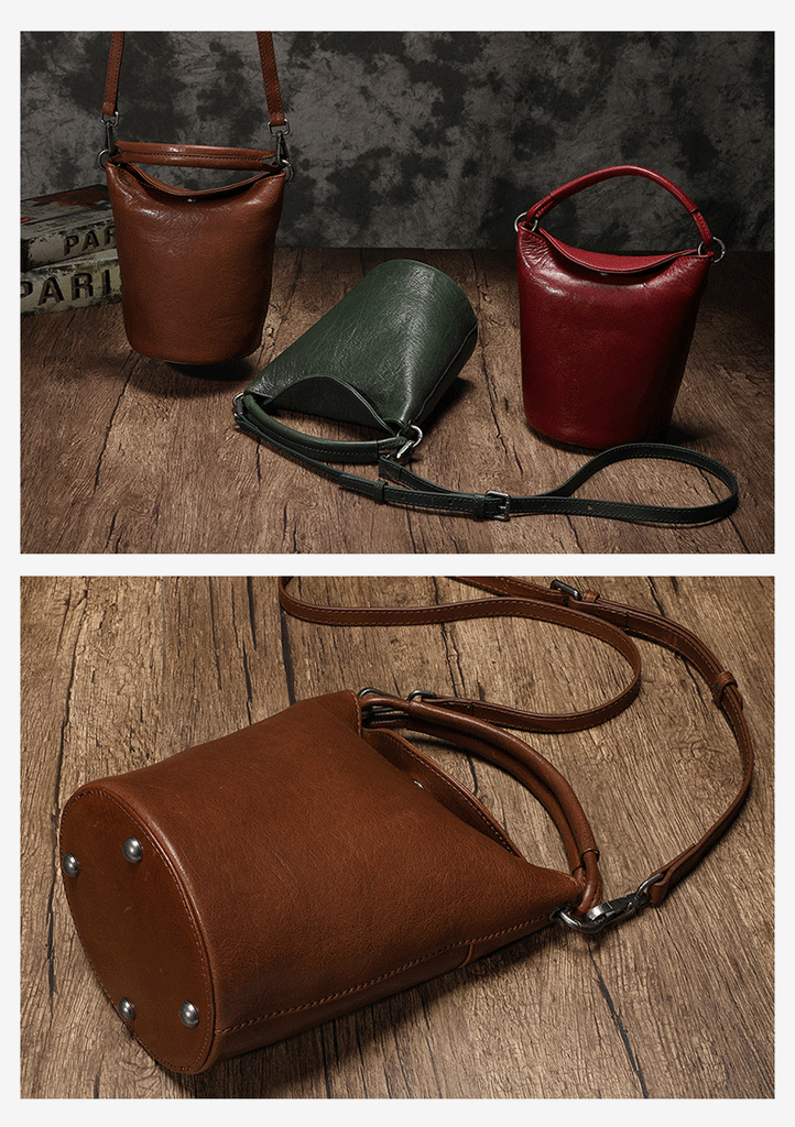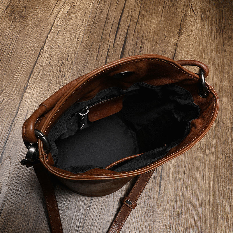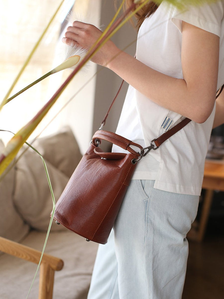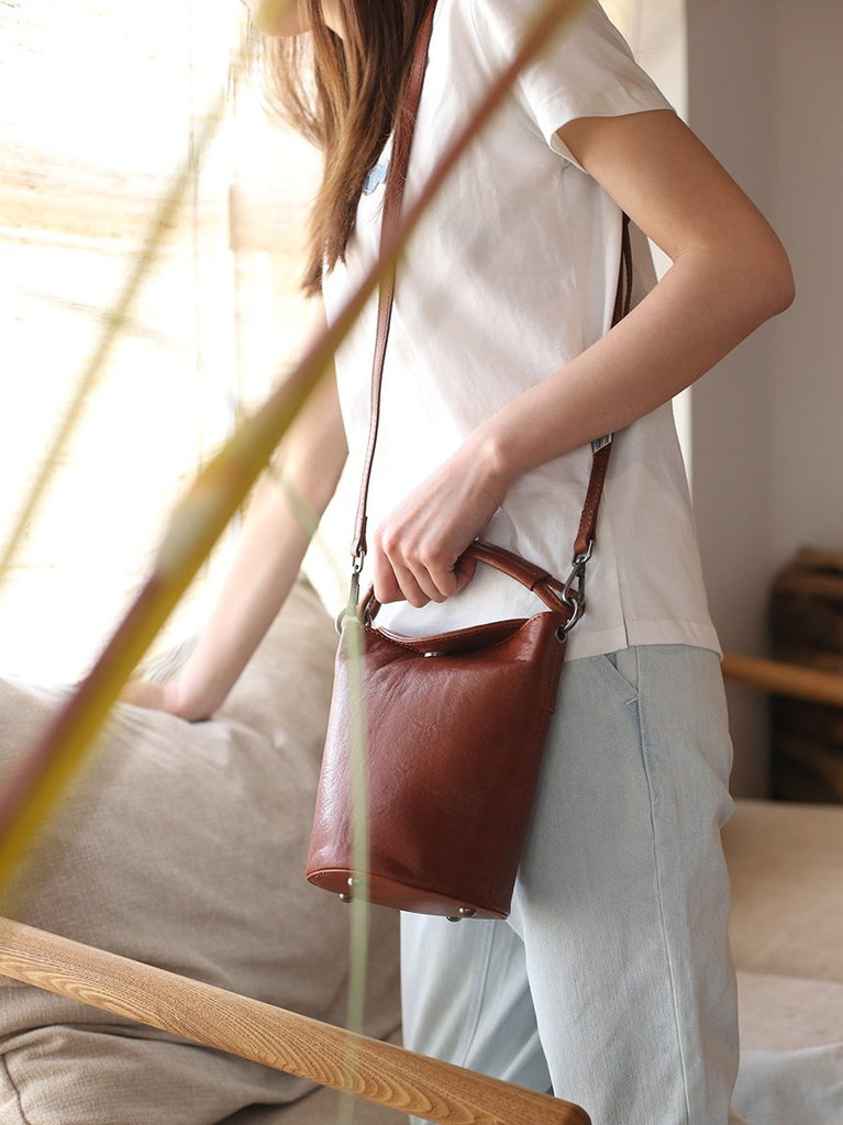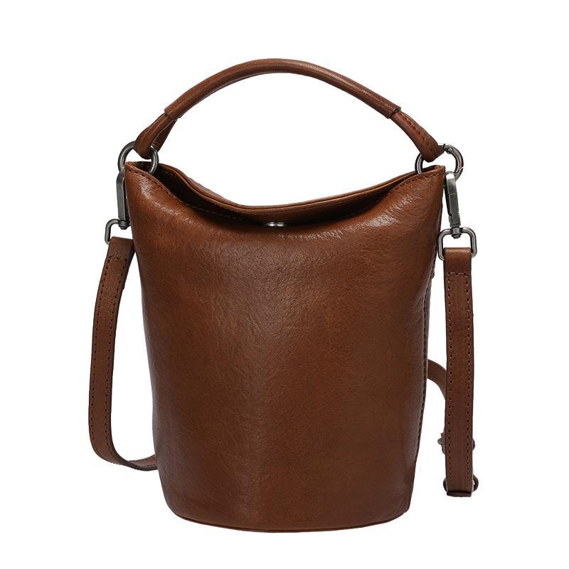 Design: Small Brown Leather Bucket Bag Vintage Style Purses