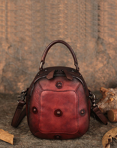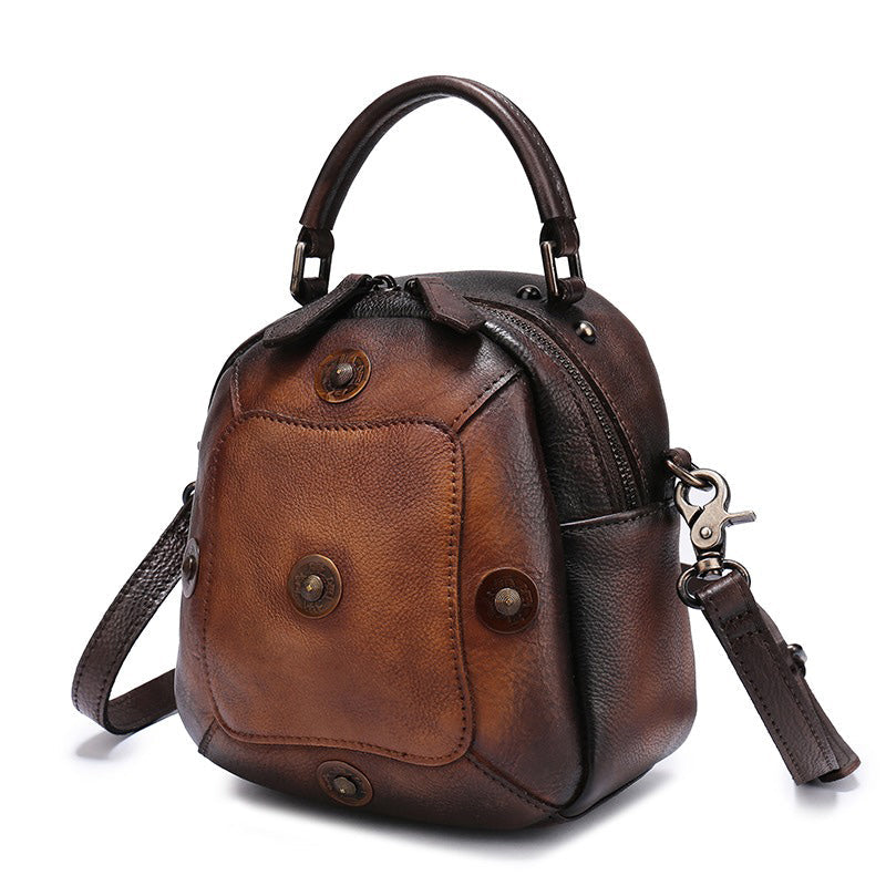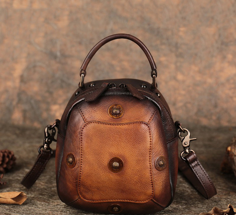 Design: Small Leather Womens Rivets Shoulder Bag Barrel Small Handmade Handbag Purse for Ladies