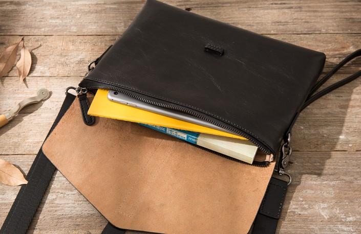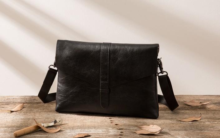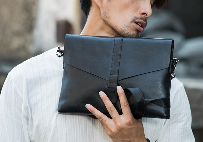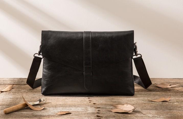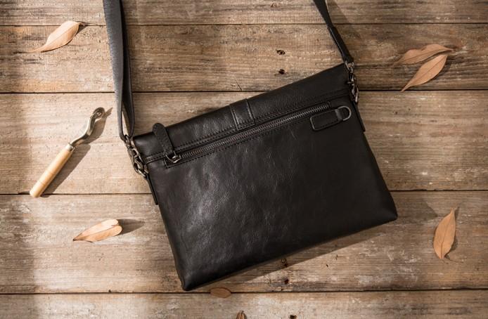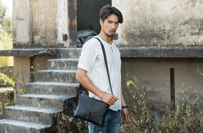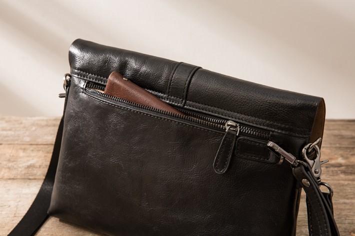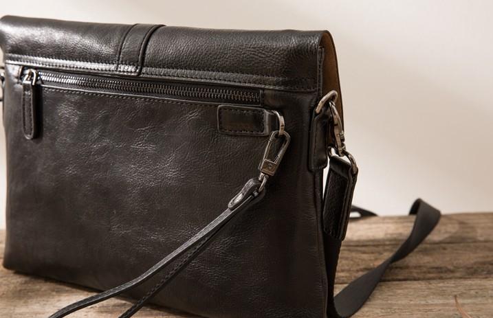 Design: Black Cool Leather Mens Shoulder Bags Messenger Bags for Men