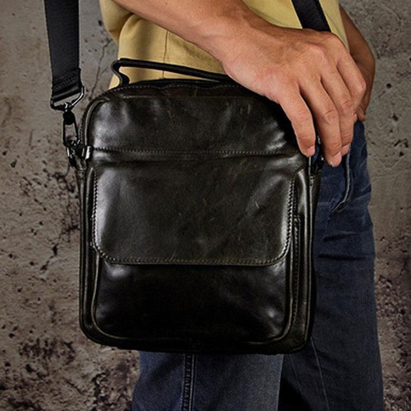 Design: Small Leather Mens SIDE BAG COURIER BAG Messenger Bag Shoulder Bag for Men