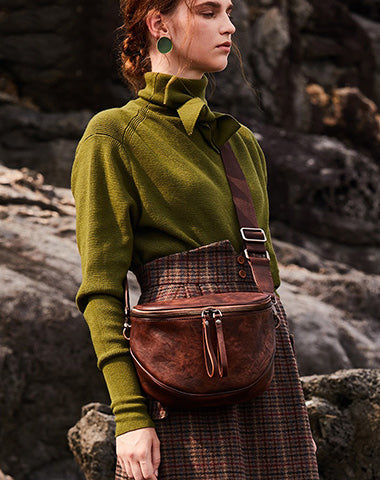 Style: Small Leather Womens Saddle Shoulder Bag Small Fanny Pack Handmade Crossbody Purse for Ladies