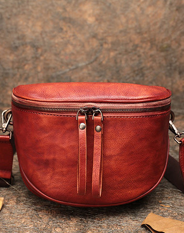Small Red Leather Womens Saddle Shoulder Bag Small Fanny Pack Handmade Crossbody Purse for Ladies