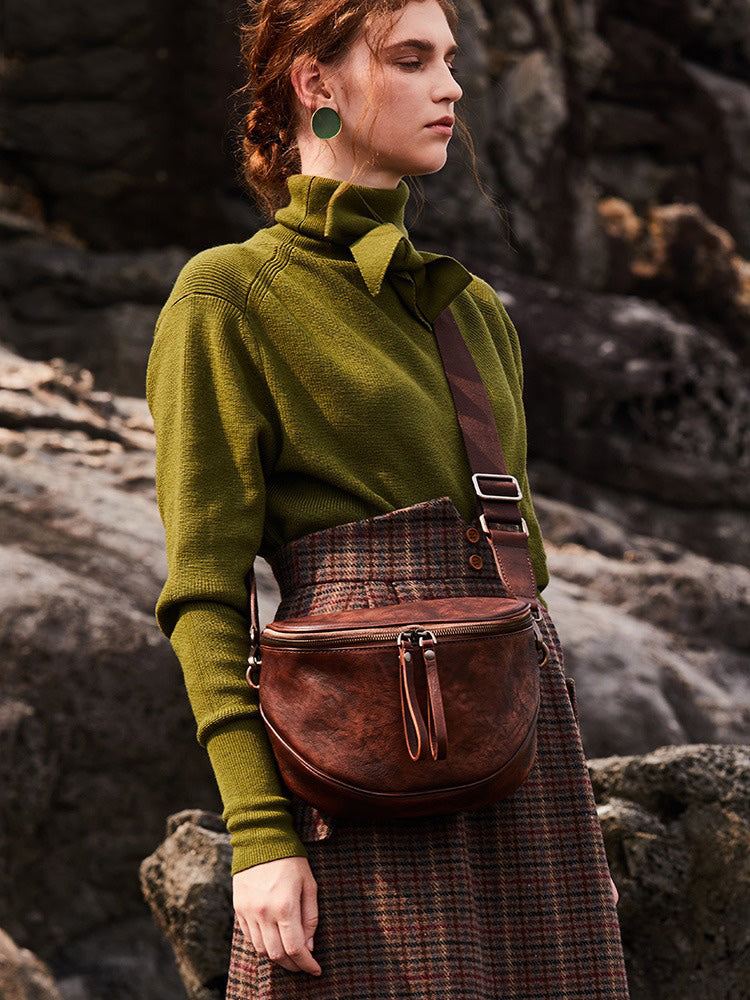 Design: Small Leather Womens Saddle Shoulder Bag Small Fanny Pack Handmade Crossbody Purse for Ladies