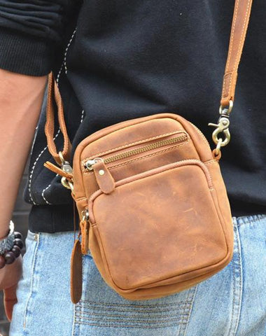 Design: Vintage Brown Leather Men's Belt Pouches Cell Phone Holsters Mini Side Bag For Men