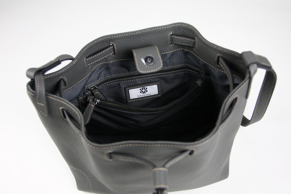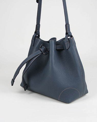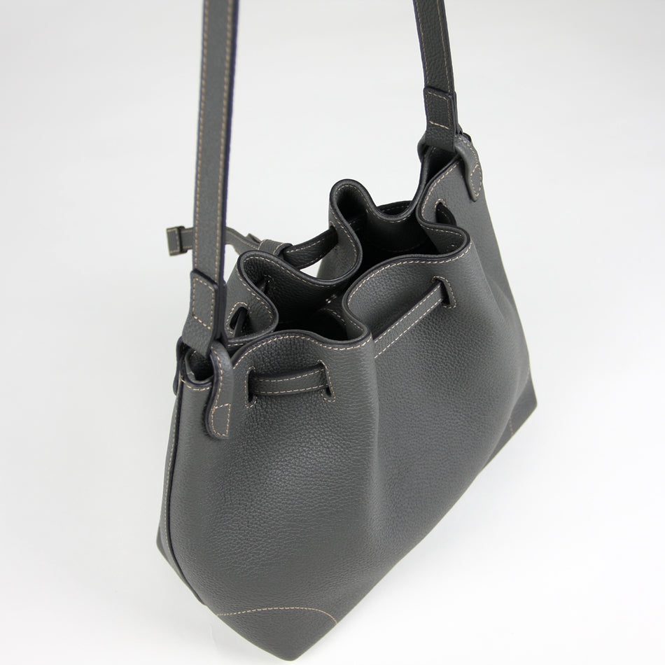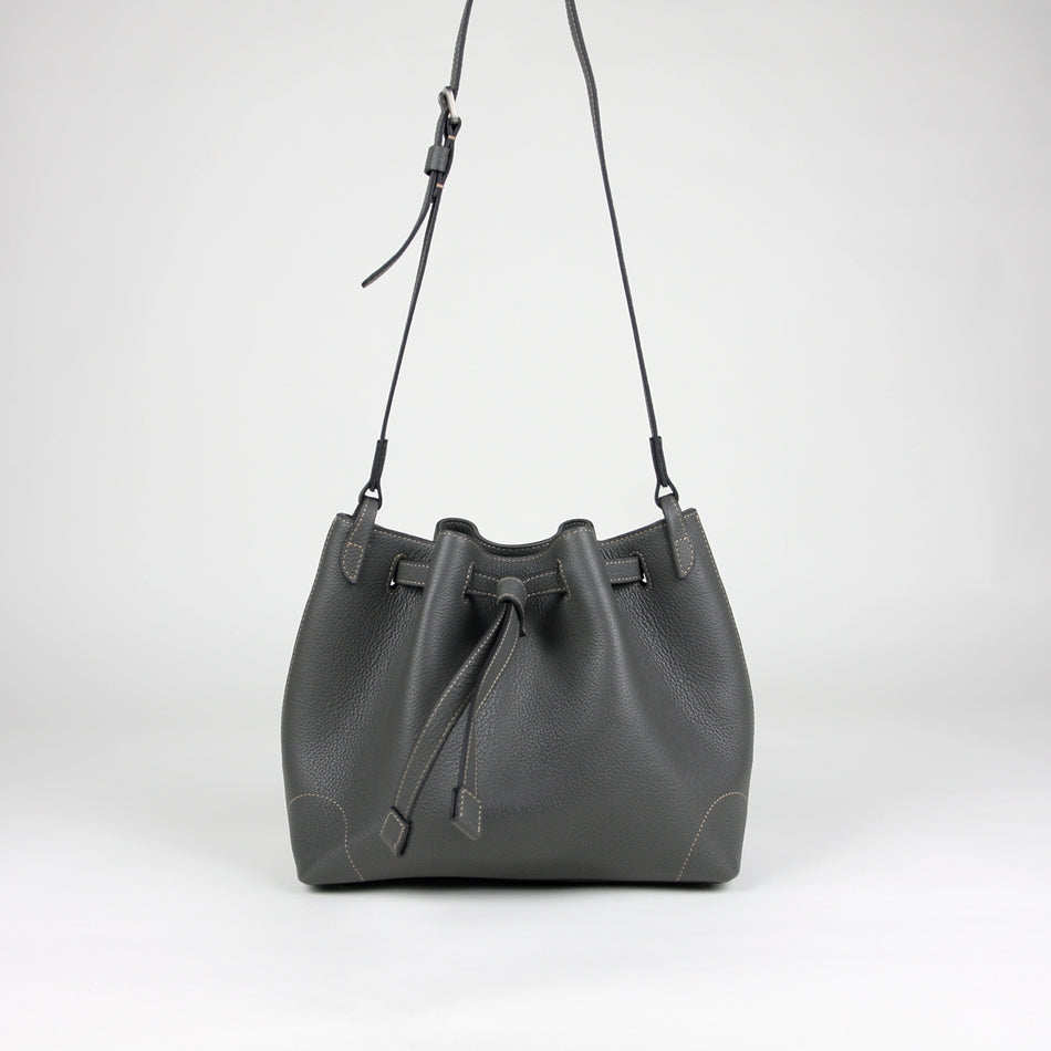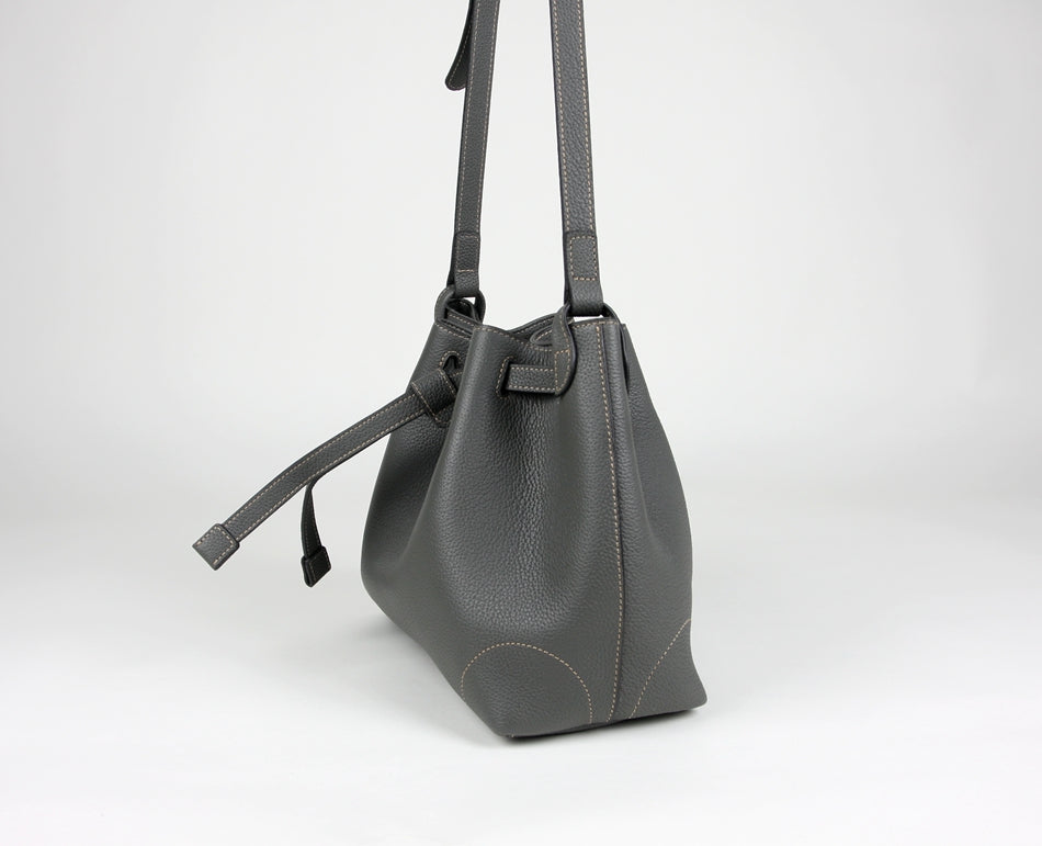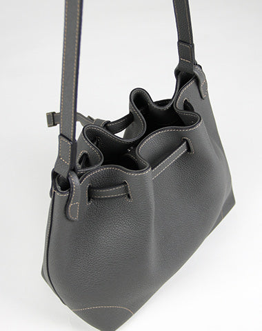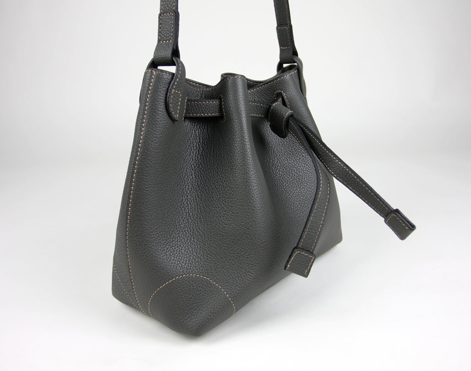 Design: Small Womens Dark Gray Leather Shoulder Bucket Purse Gray Leather Barrel Shoulder Bag Purse for Ladies