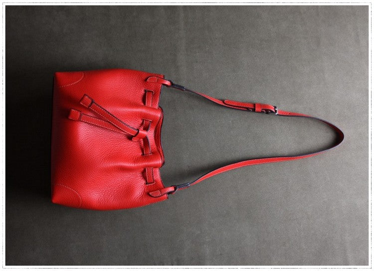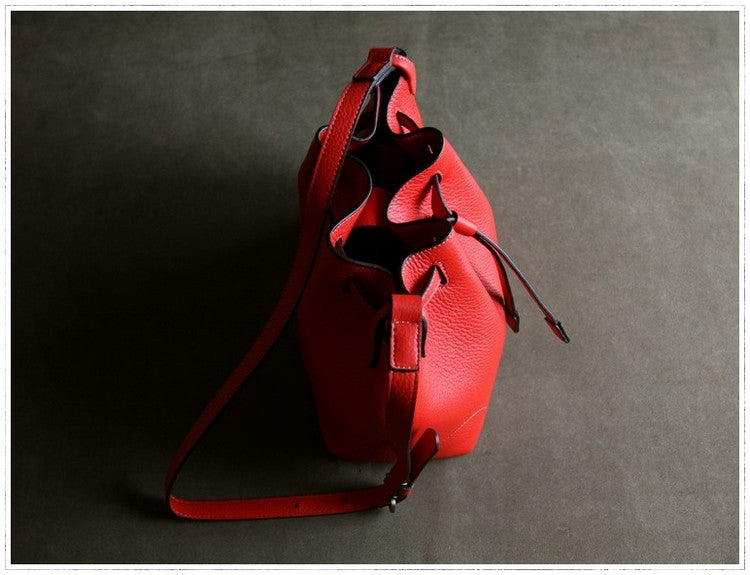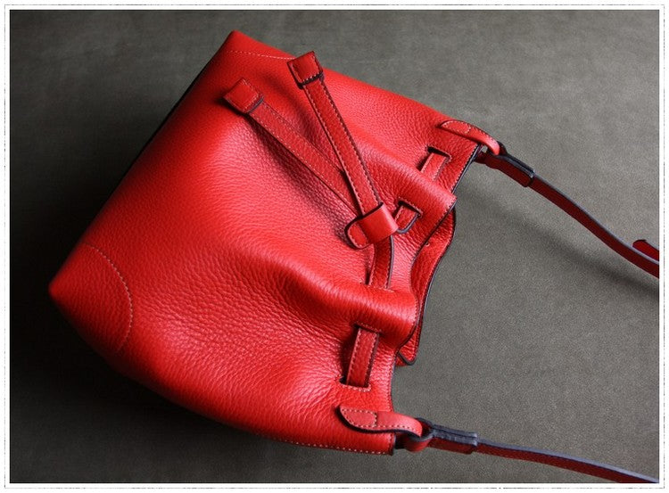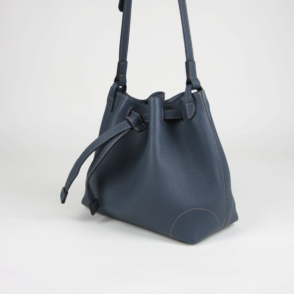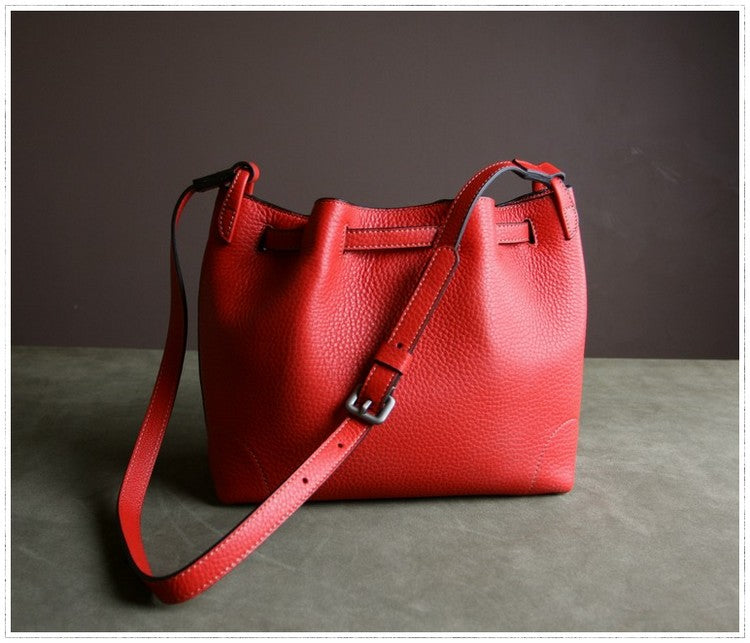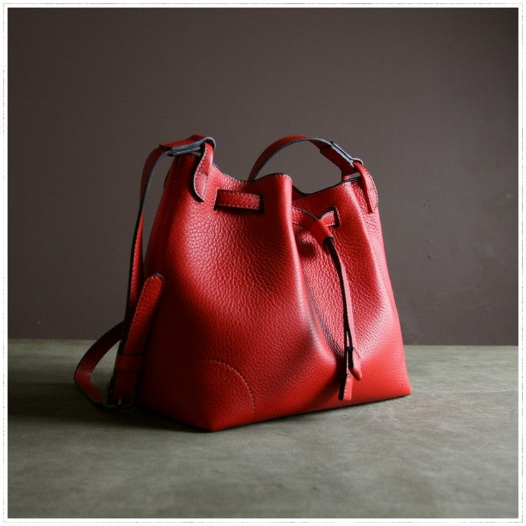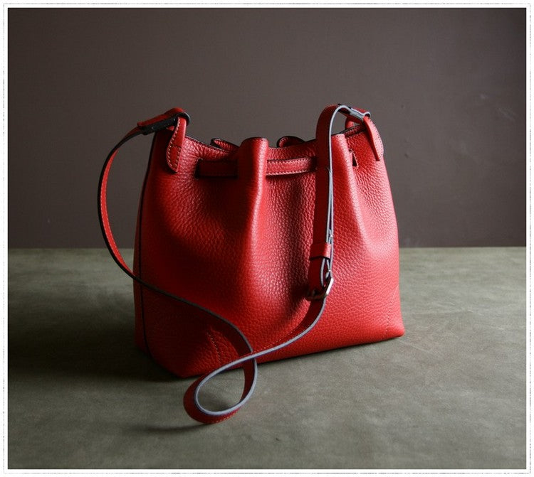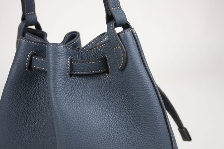 Design: Small Womens Dark Gray Leather Shoulder Bucket Purse Gray Leather Barrel Shoulder Bag Purse for Ladies