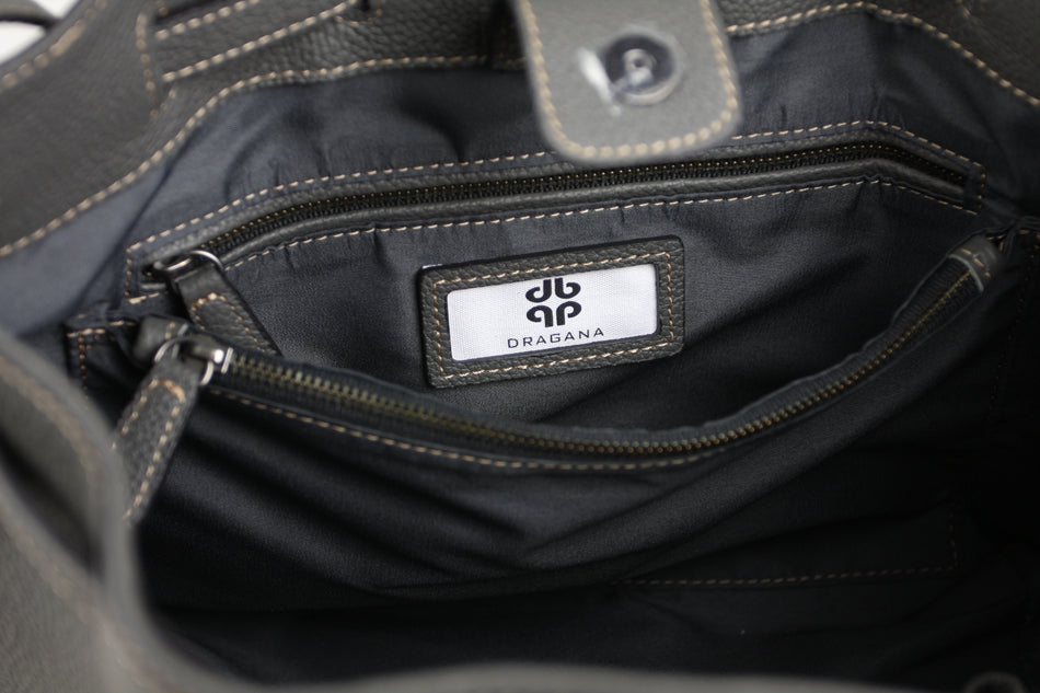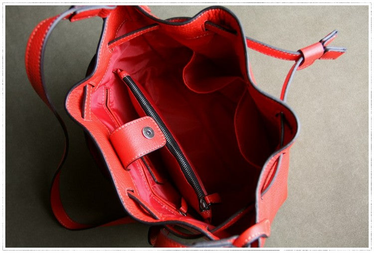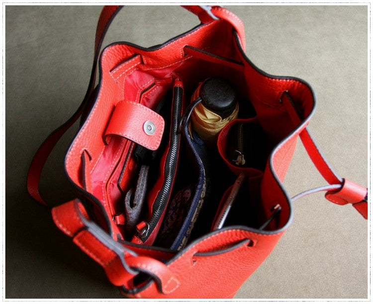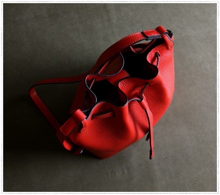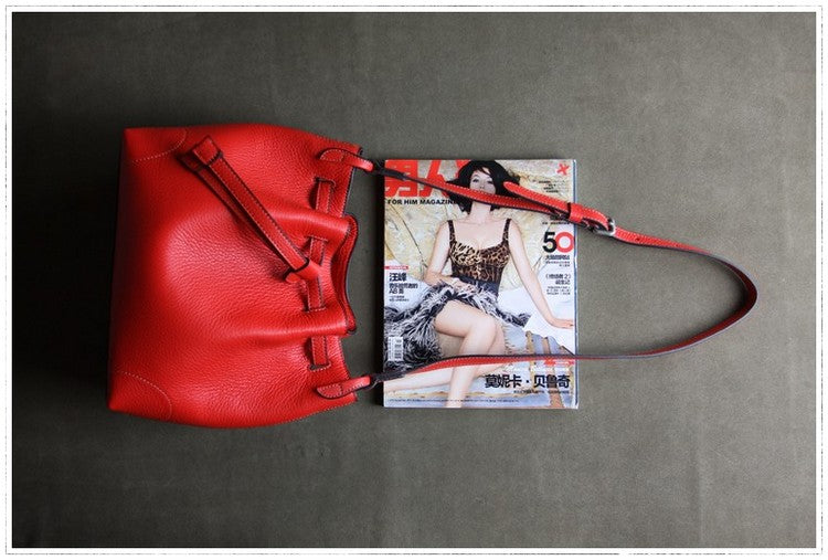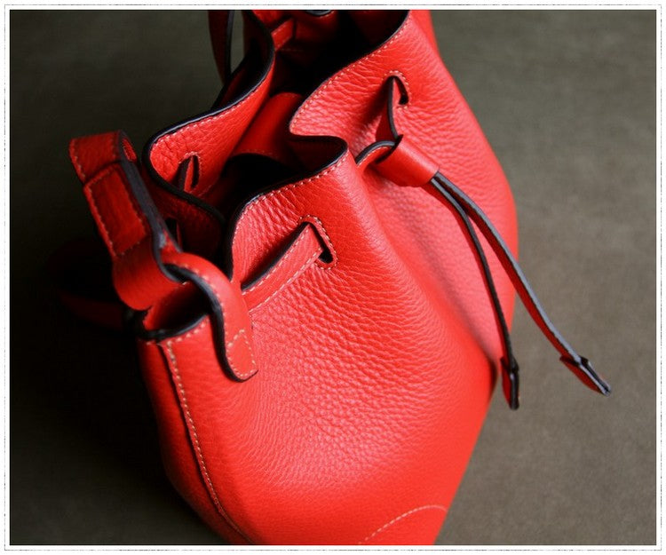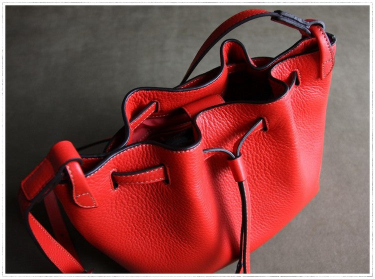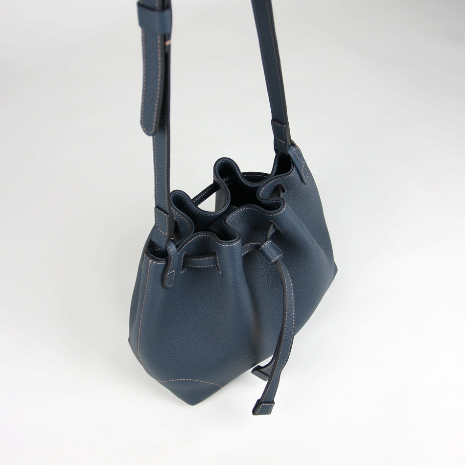 Design: Small Womens Dark Gray Leather Shoulder Bucket Purse Gray Leather Barrel Shoulder Bag Purse for Ladies