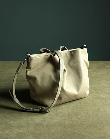 Small Womens Gray Nylon Leather Crossbody Handbag Purse Bucket Gray Nylon Shoulder Bag Purse for Ladies
