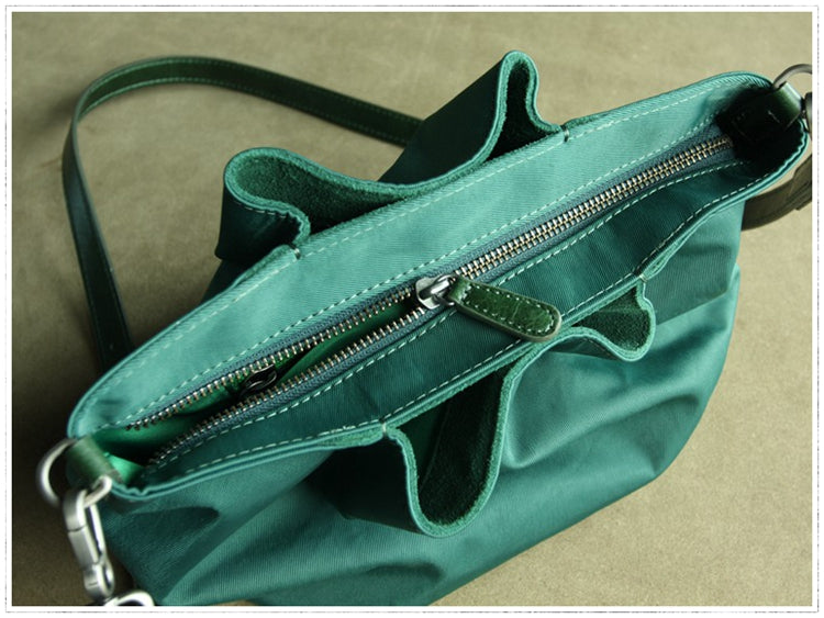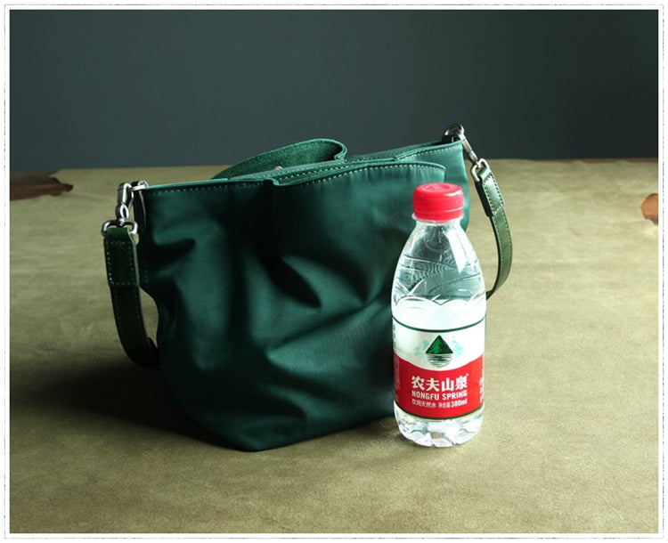 Design: Small Womens Nylon Leather Crossbody Handbag Purse Bucket Nylon Shoulder Bag Purse for Ladies