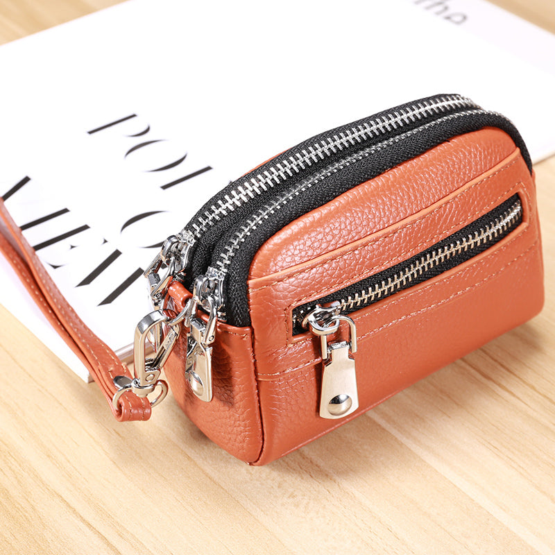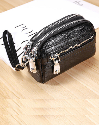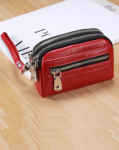 Design: Small Womens Leather Green Double Zip Wallet Mini Wallet with Coin Pocket Zip Wallet for Ladies