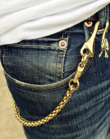 Style: Solid Brass Cool Punk Rock Skull Wallet Chain Biker Trucker Wallet Chain Trucker Wallet Chain for Men