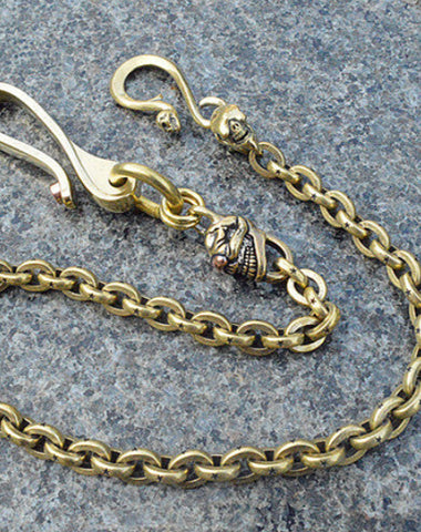 Both ends of the chain are equipped with sturdy hooks, ensuring that it can be easily attached to your wallet and belt loop. These hooks are designed for durability and ease of use, providing a reliable connection that won't easily come undone. The brass construction not only offers a timeless, rugged look but also ensures longevity, as brass is resistant to rust and corrosion.