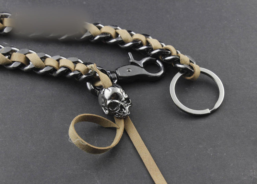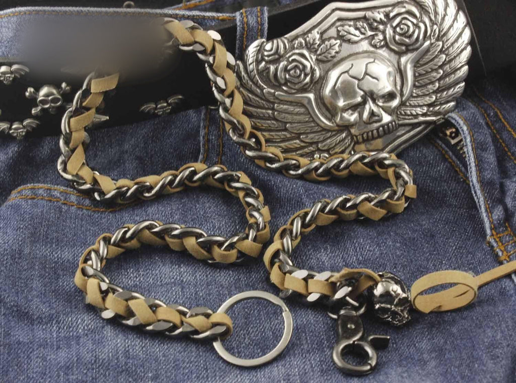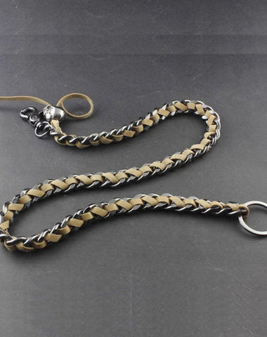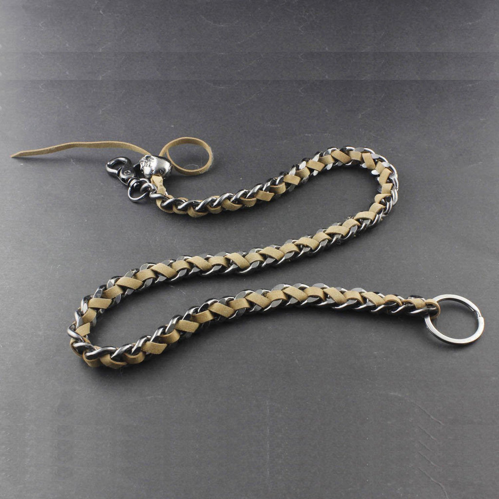 Design:? Solid Metal Leather Braided Long Wallet Chain Cool Punk Rock Biker Trucker Wallet Chain Trucker Wallet Chain for Men