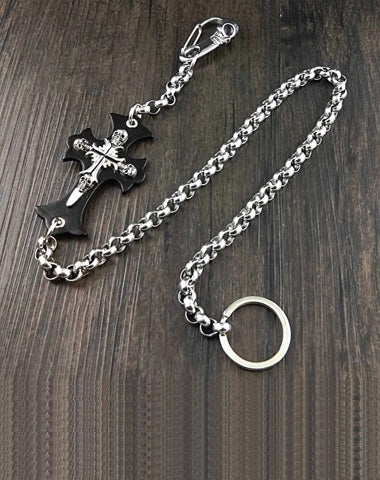 Style: Solid Stainless Steel Long Cross Skull Wallet Chain Cool Punk Rock Biker Trucker Wallet Chain Trucker Wallet Chain for Men
