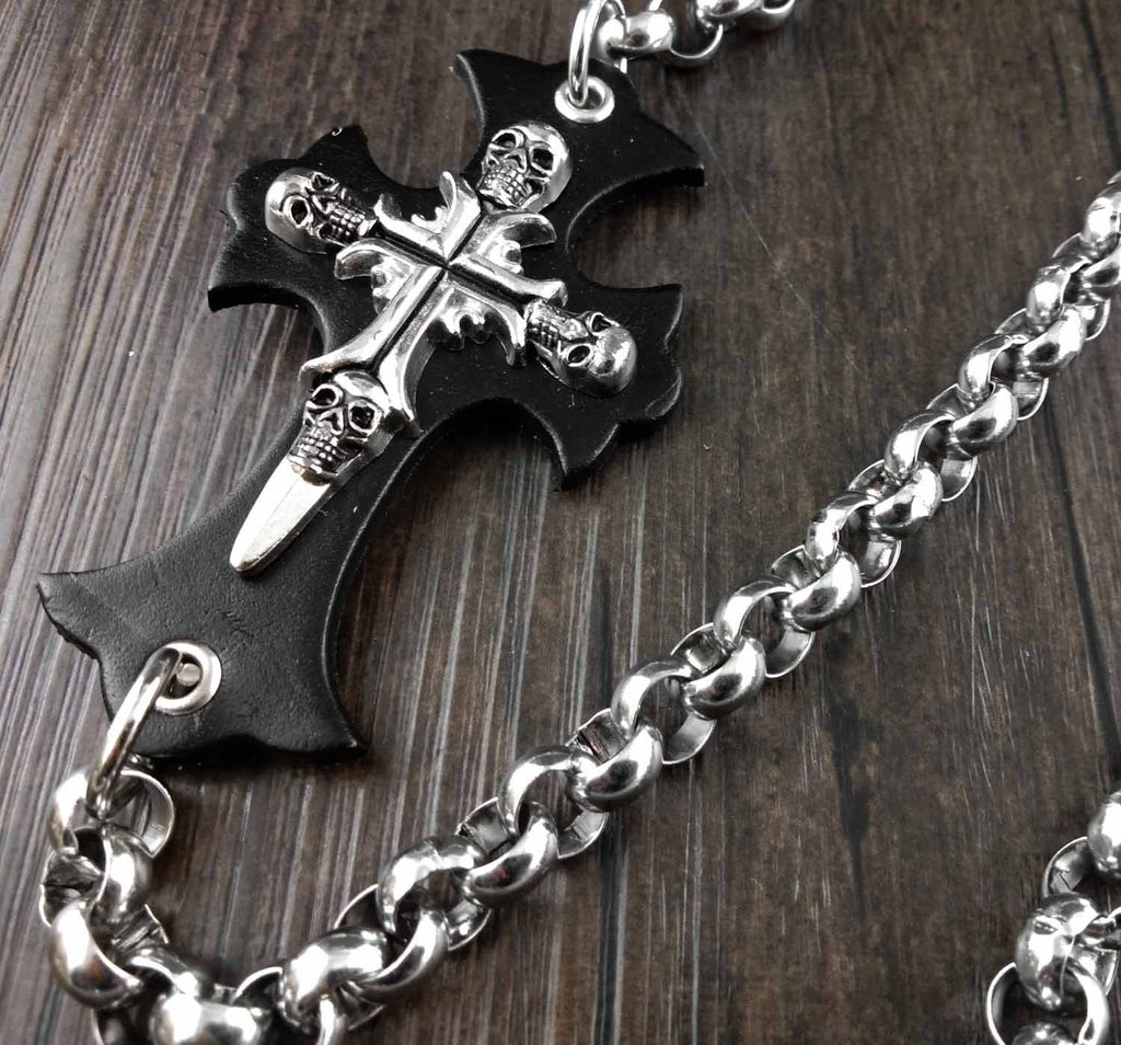 Design:? Solid Stainless Steel Long Cross Skull Wallet Chain Cool Punk Rock Biker Trucker Wallet Chain Trucker Wallet Chain for Men