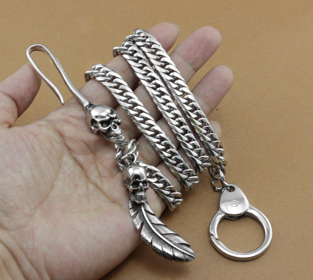 Design:? Solid Stainless Steel Long Skull Wallet Chain Cool Punk Rock Biker Trucker Wallet Chain Trucker Wallet Chain for Men