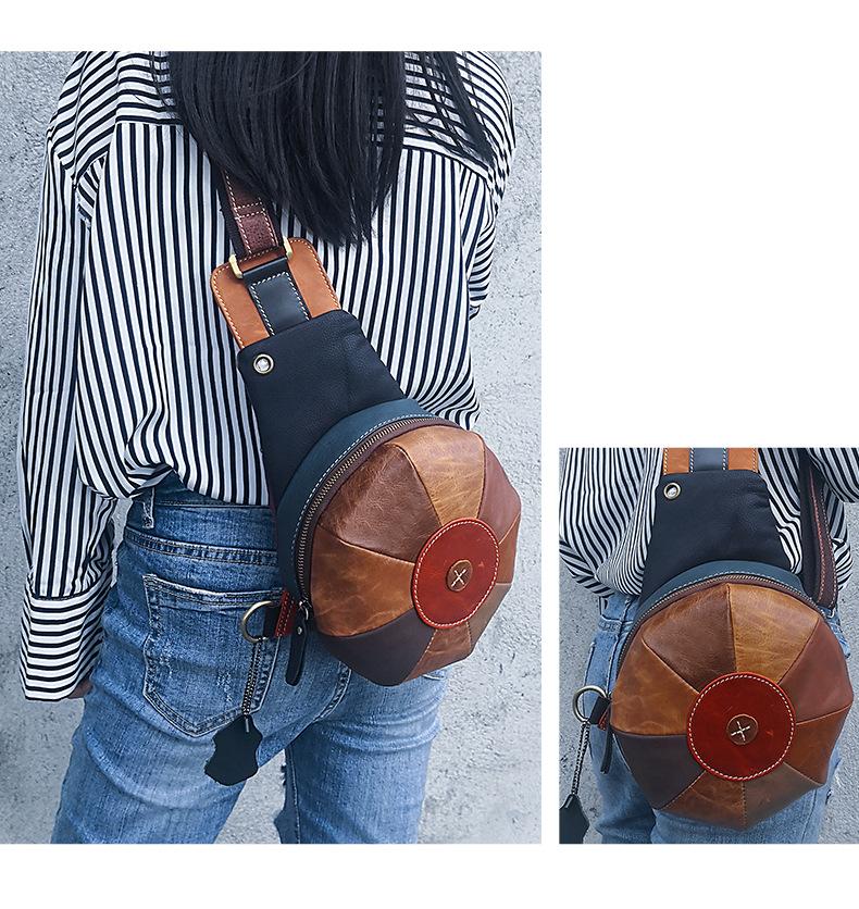 Style: Stitched Brown Leather Men's Sling Bag Shoulder Bag Chest Bag One Shoulder Backpack For Men