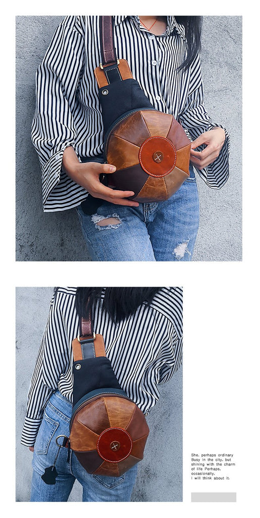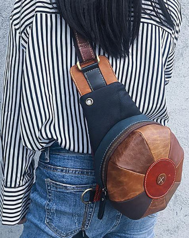 Design: Stitched Brown Leather Men's Sling Bag Shoulder Bag Chest Bag One Shoulder Backpack For Men