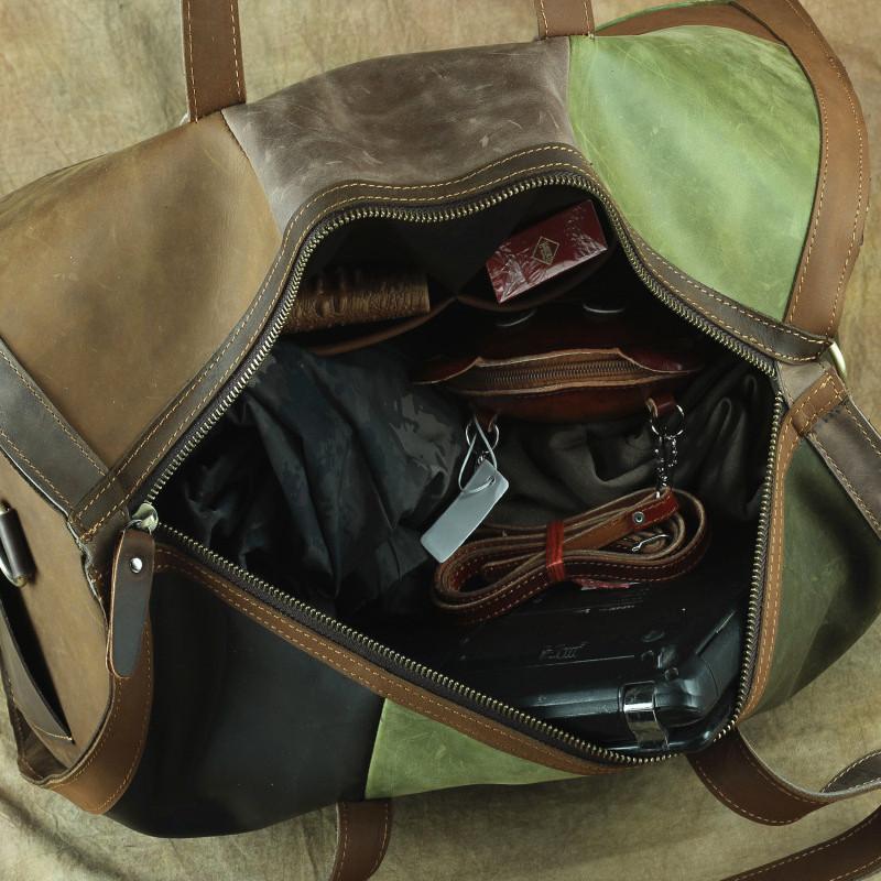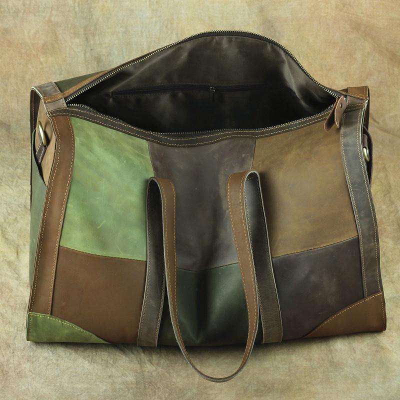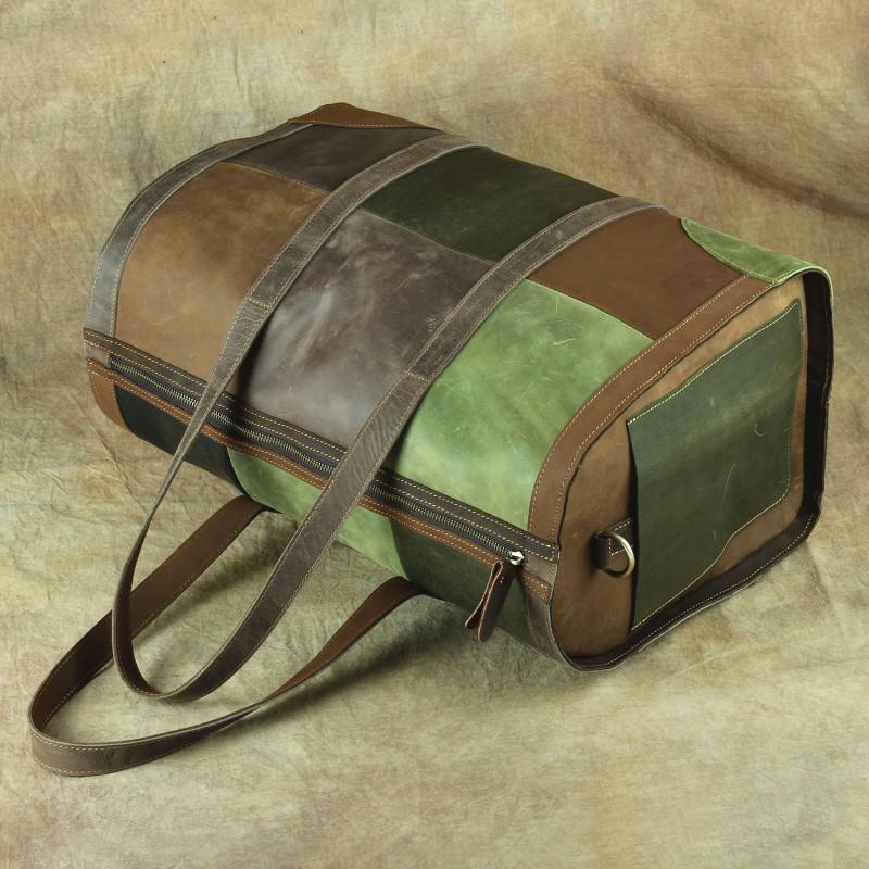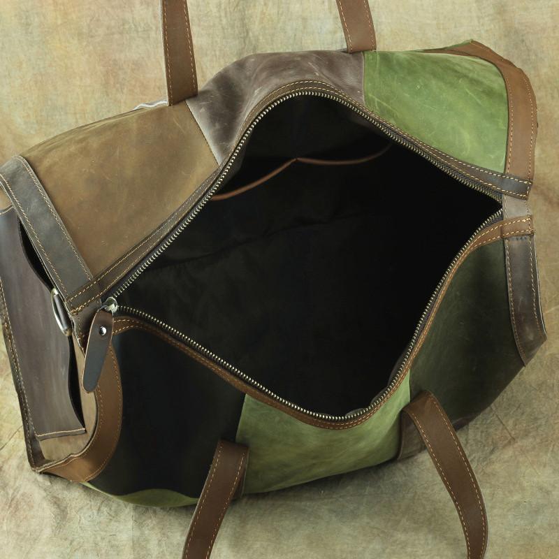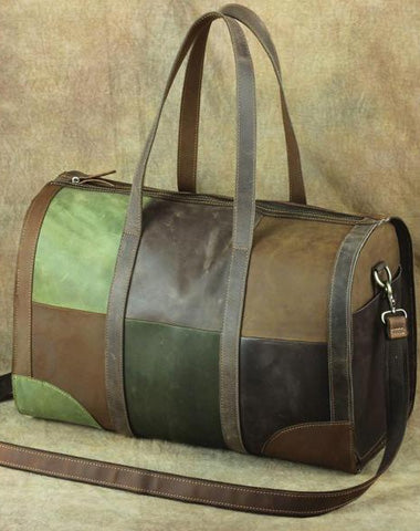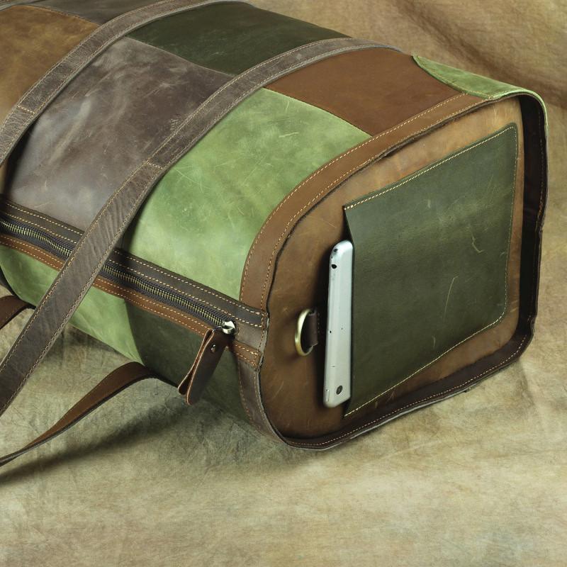 Design: Vintage Green Leather Men's Weekender Bag Travel Bag Overnight Bag For Men