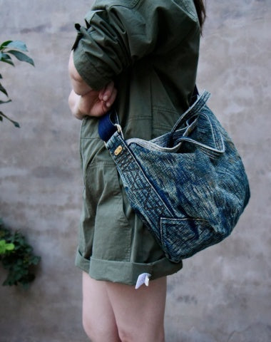Design: Blue Denim Tote Handbag Washed Denim Tote Bag Stone Washed Denim Tote Shoulder Bag