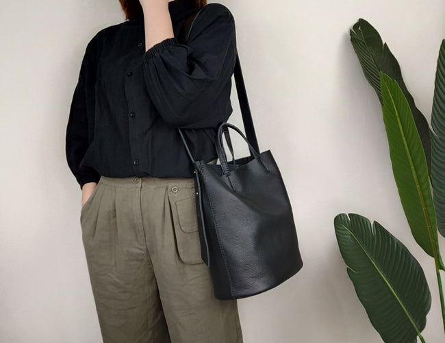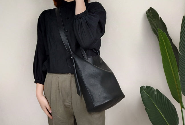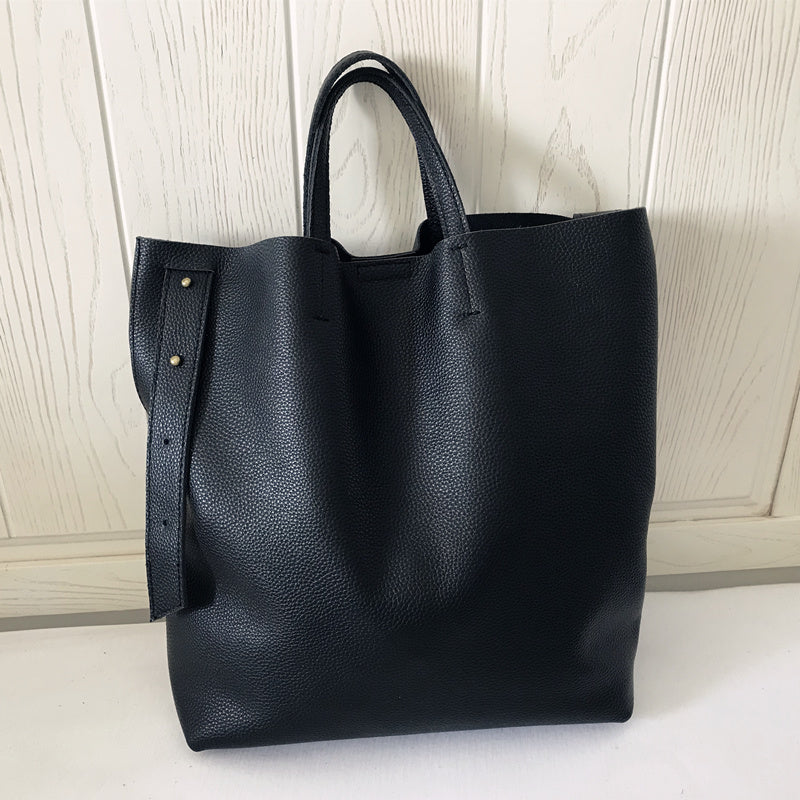 Style: Stylish Black Leather Tote Bag Shoulder Tote Handbag Black Crossbody Tote Purse For Women