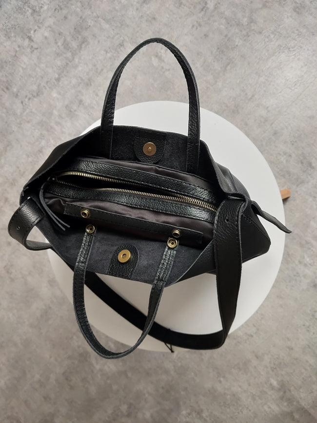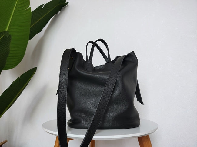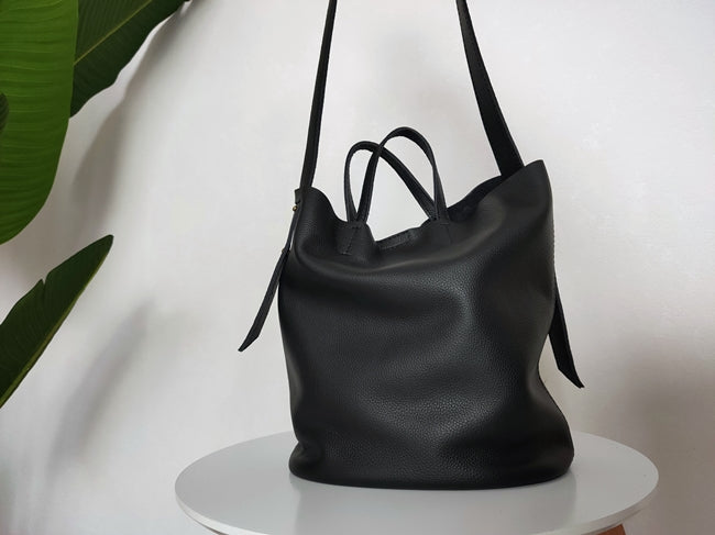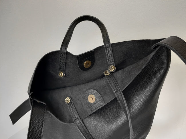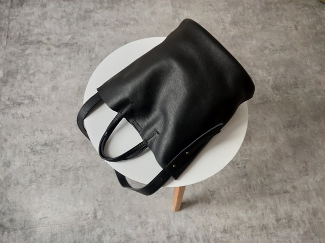 Design: Stylish Black Leather Tote Bag Shoulder Tote Handbag Black Crossbody Tote Purse For Women