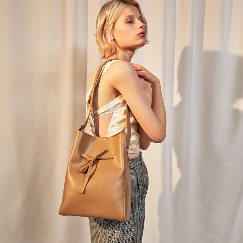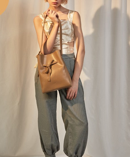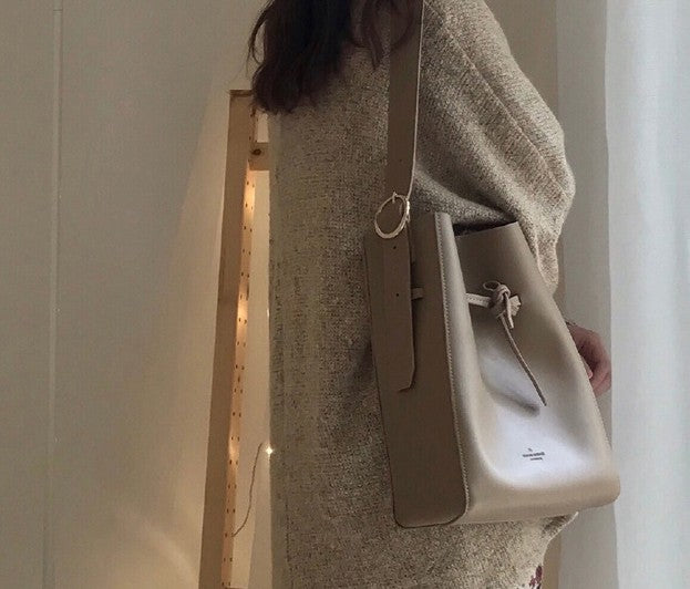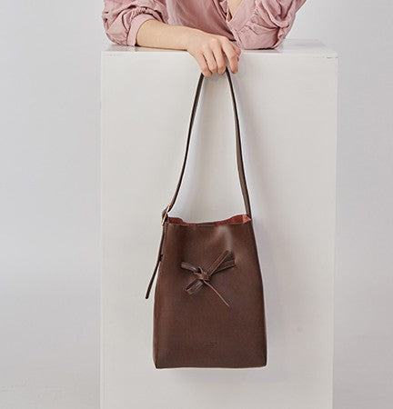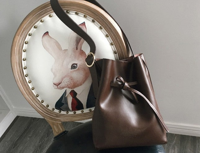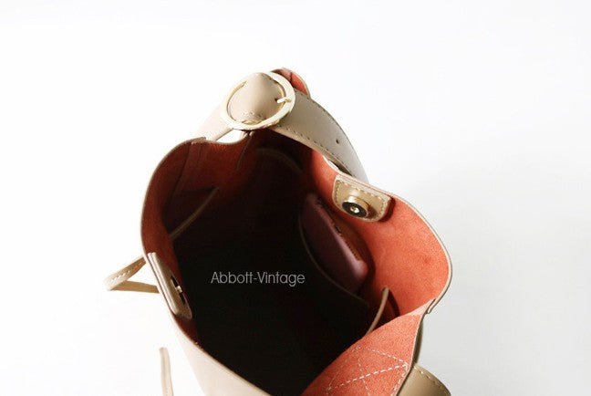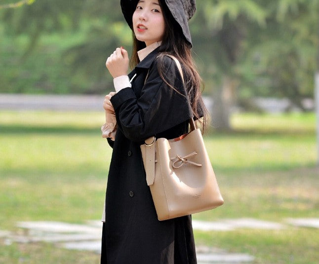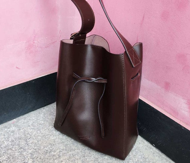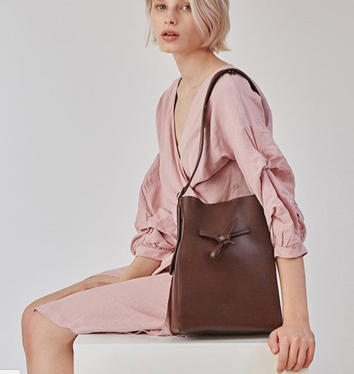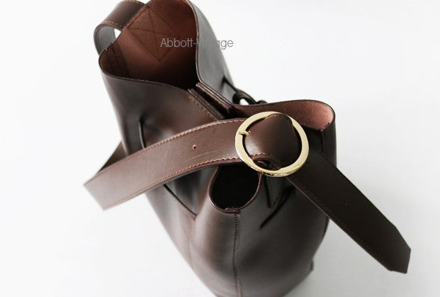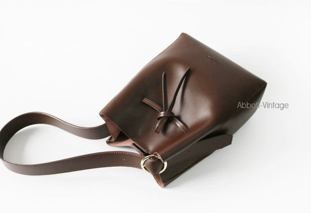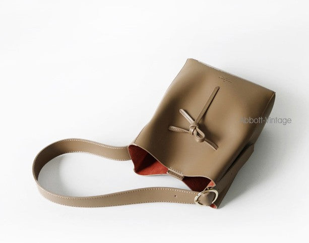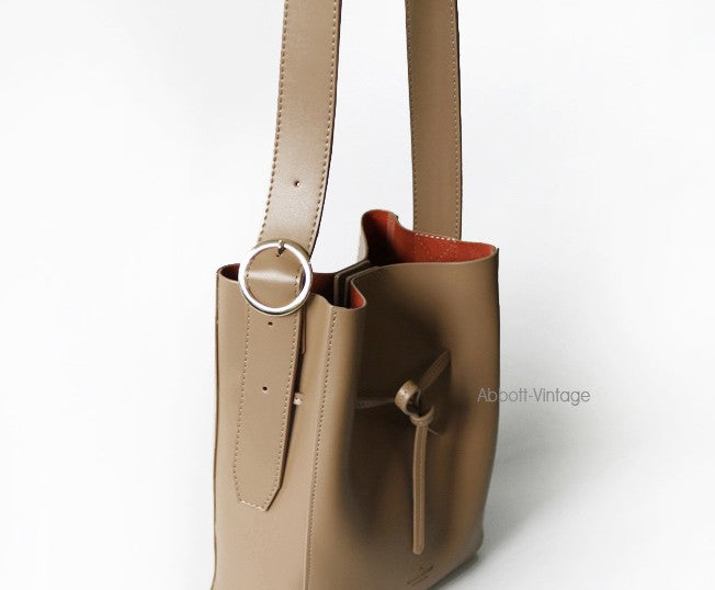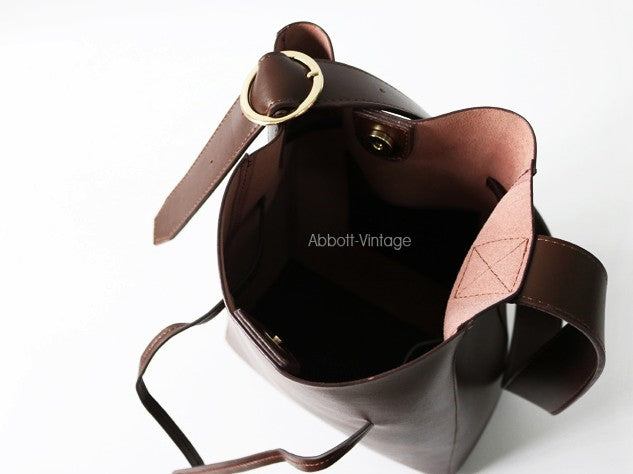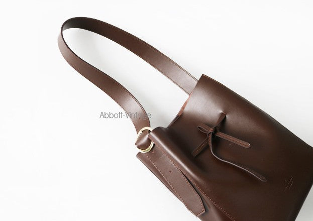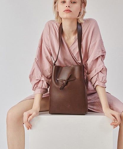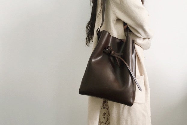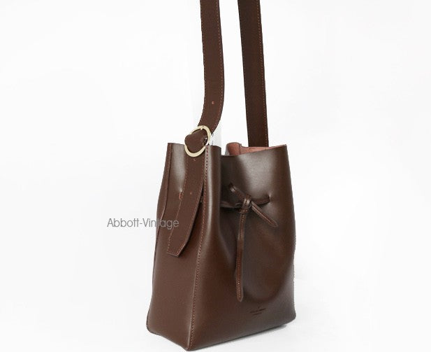 Design: Stylish Leather Brown Womens Bucket Purse Crossbody Bag Barrel Shoulder Bag for Women