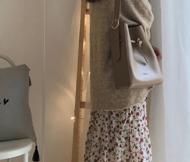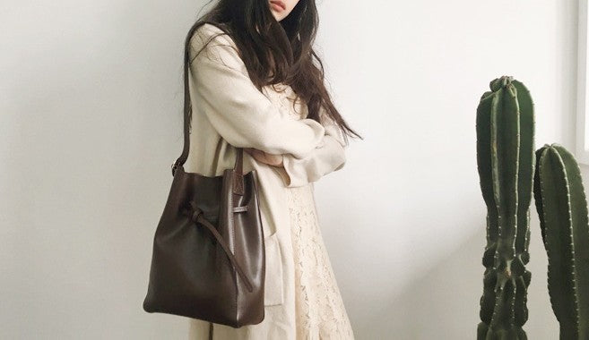 Style: Stylish Leather Brown Womens Bucket Purse Crossbody Bag Barrel Shoulder Bag for Women