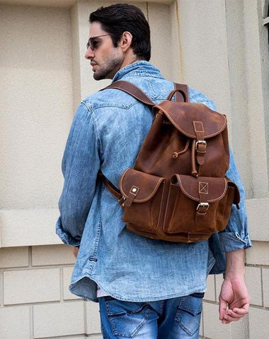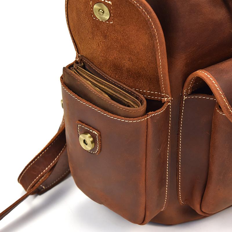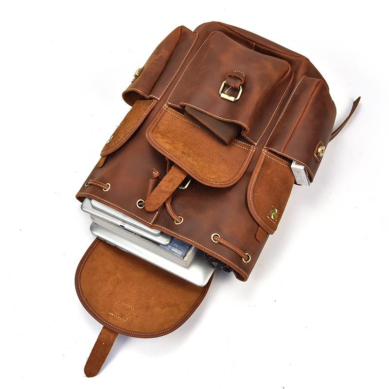 Design: Vintage Leather Mens 14inch Laptop Backpack Travel Backpacks School Backpacks for Men