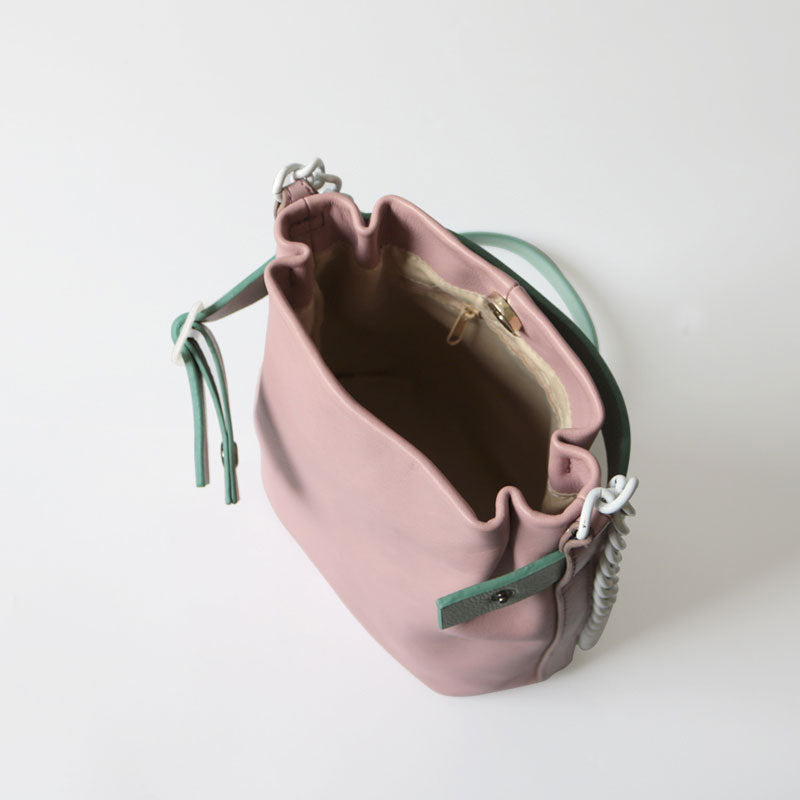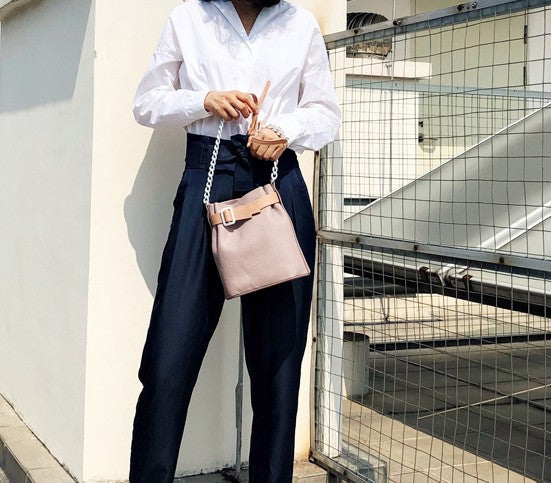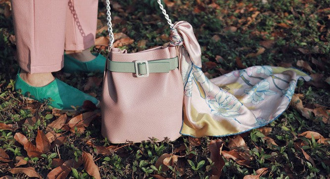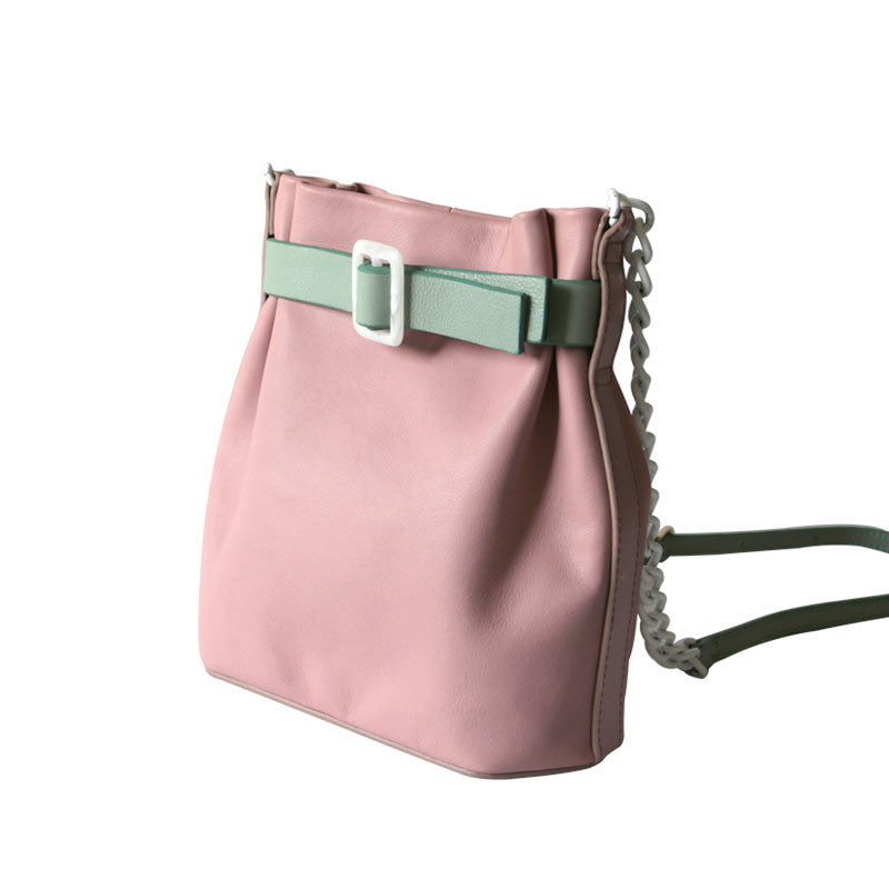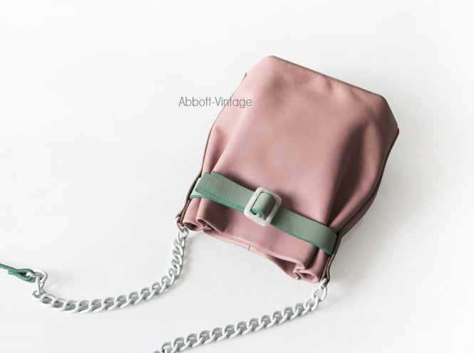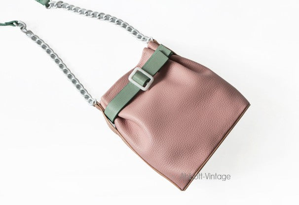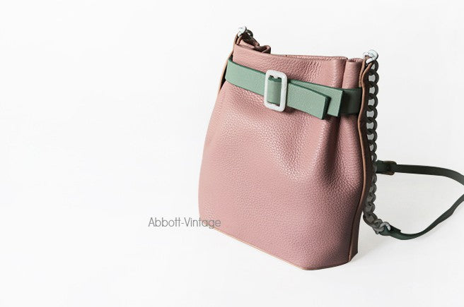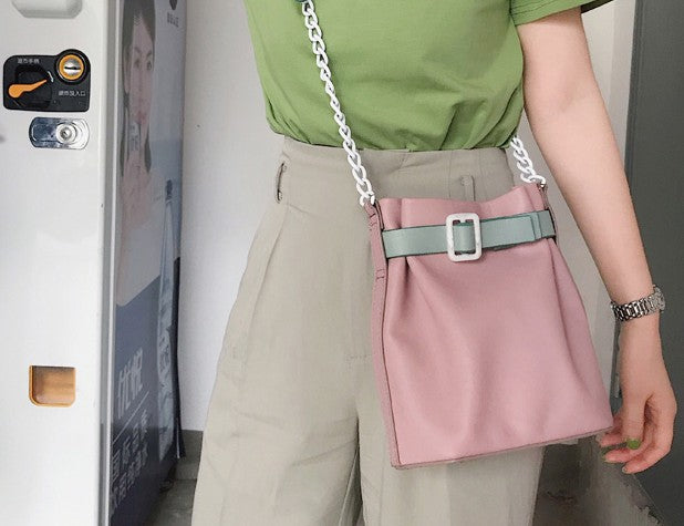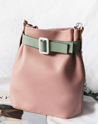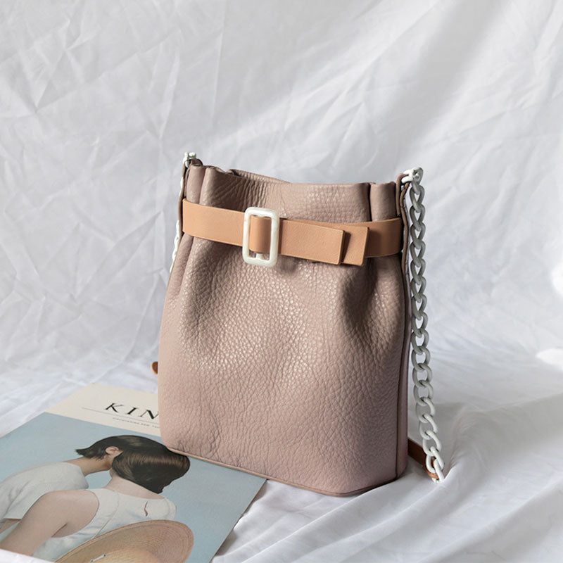 Design: Stylish Leather Pink Chain Womens Bucket Purse Crossbody Bag Barrel Shoulder Bag for Women