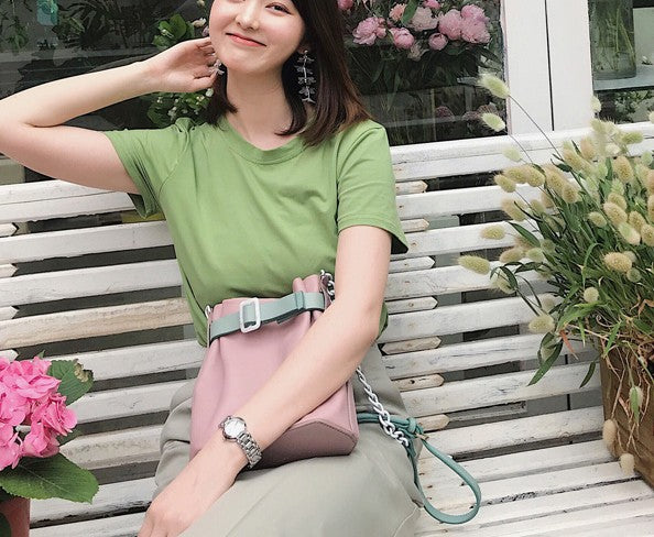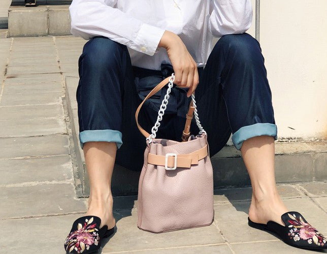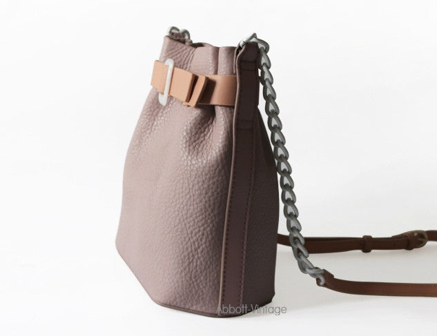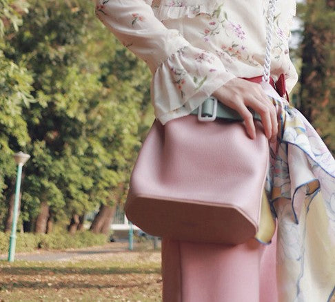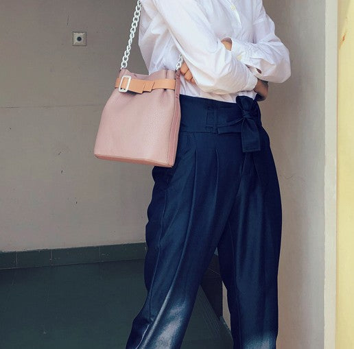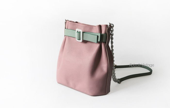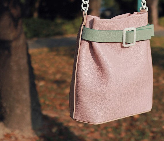 Style: Stylish Leather Pink Chain Womens Bucket Purse Crossbody Bag Barrel Shoulder Bag for Women