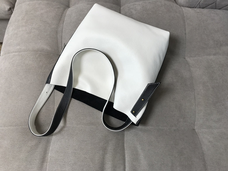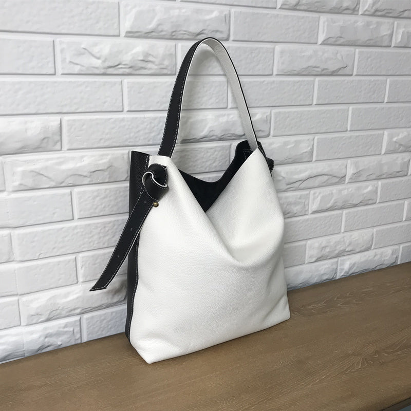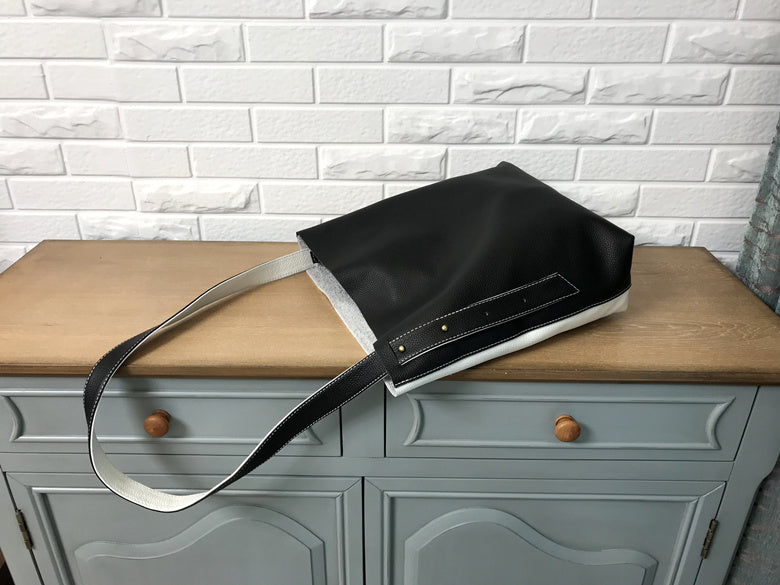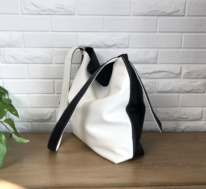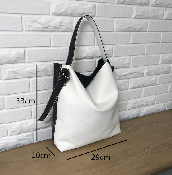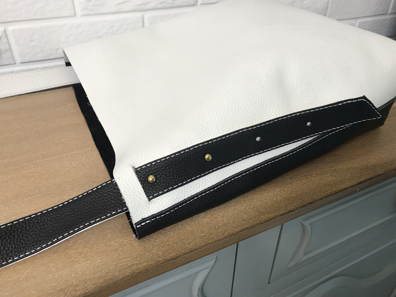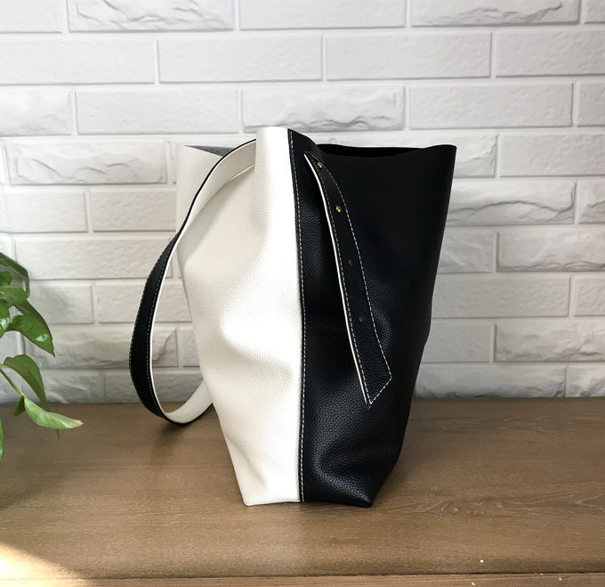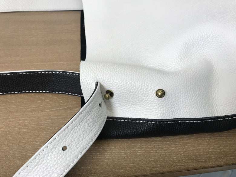 Design: Stylish White Black Leather Tote Bag Shoulder Tote Bag Crossbody Tote Purse For Women