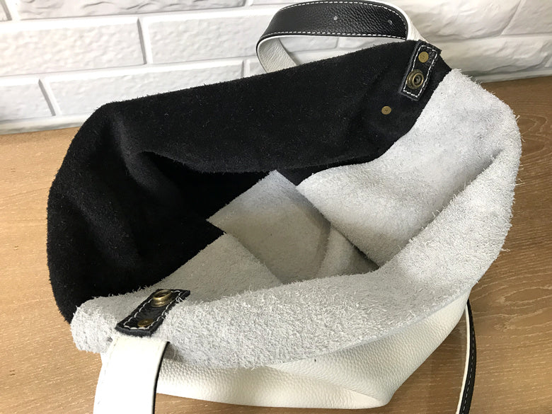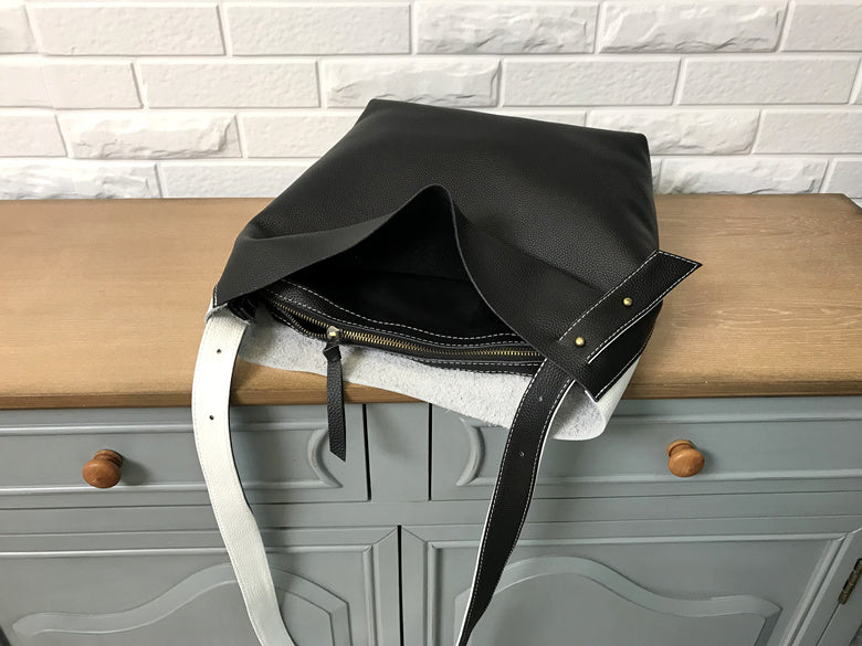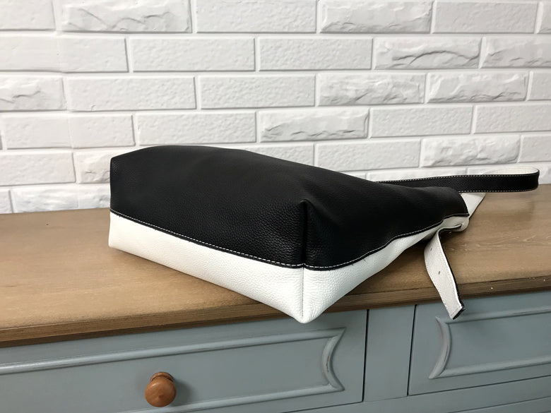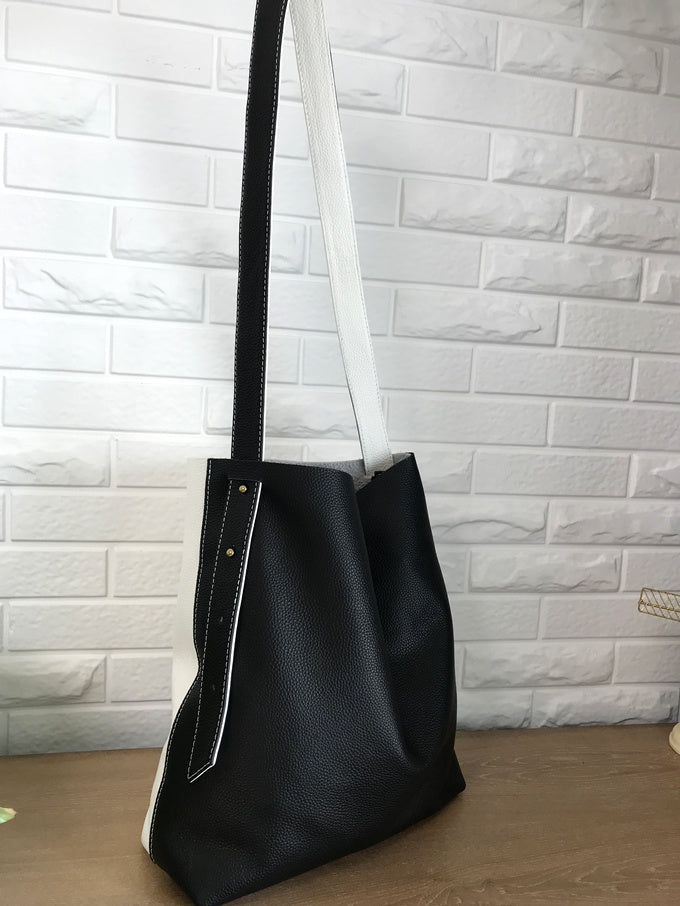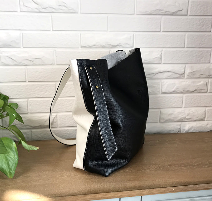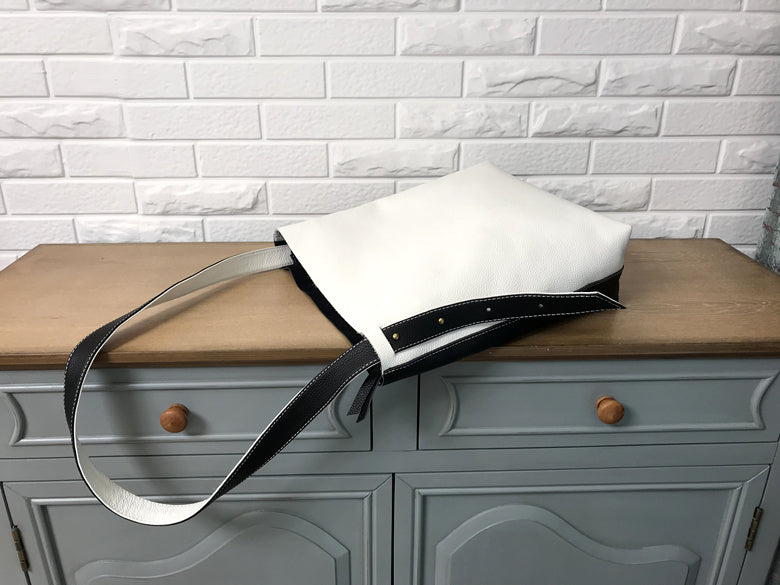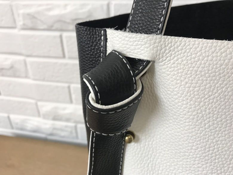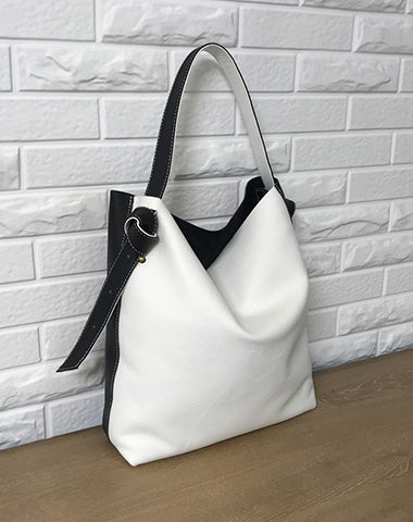 Design: Stylish White Black Leather Tote Bag Shoulder Tote Bag Crossbody Tote Purse For Women