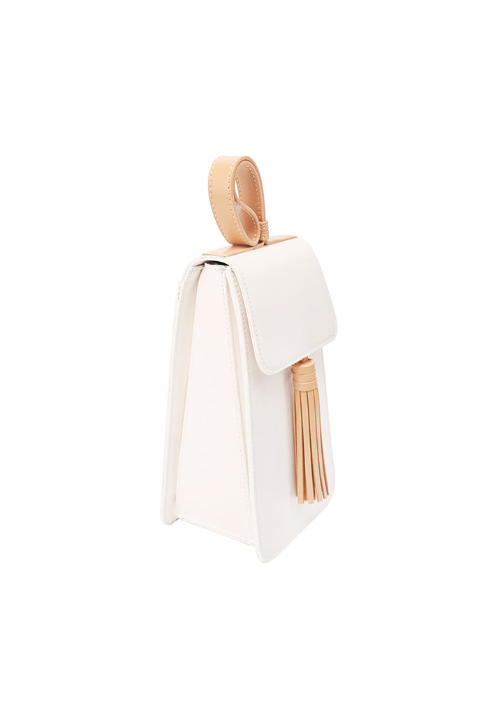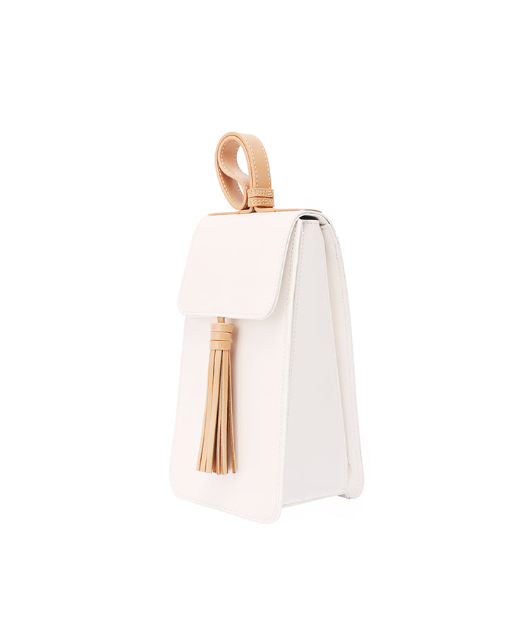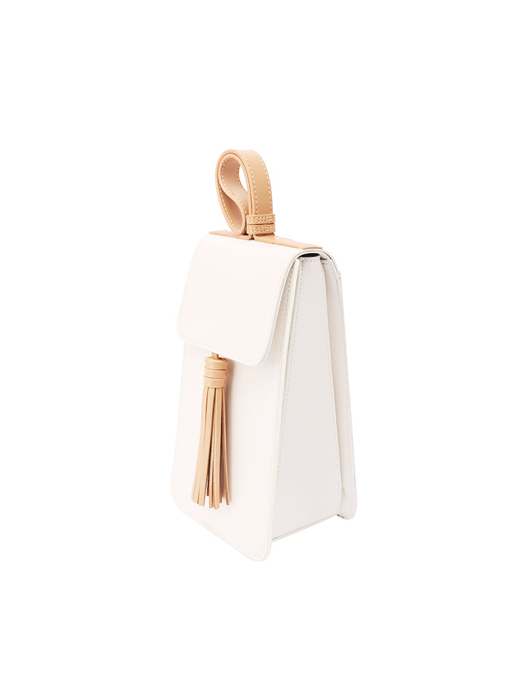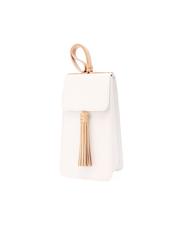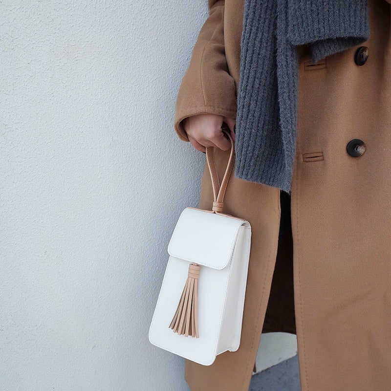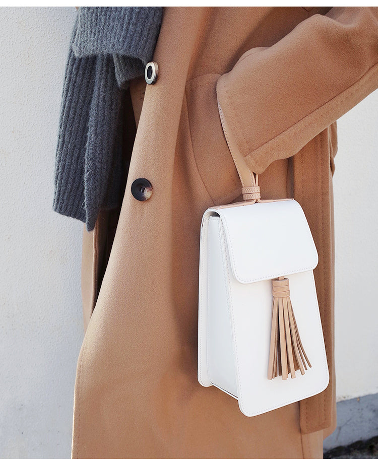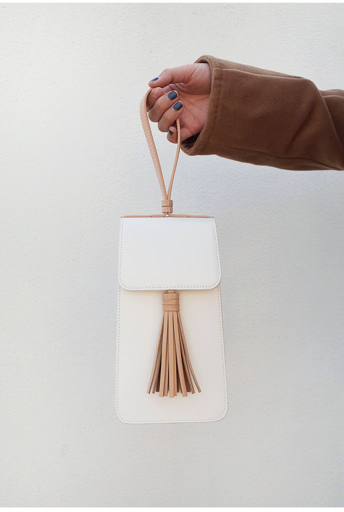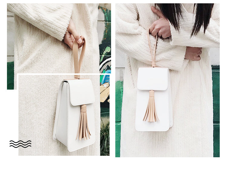 Design: Stylish White Leather Womens Handbag Tassel Wristlet Bag for Women
